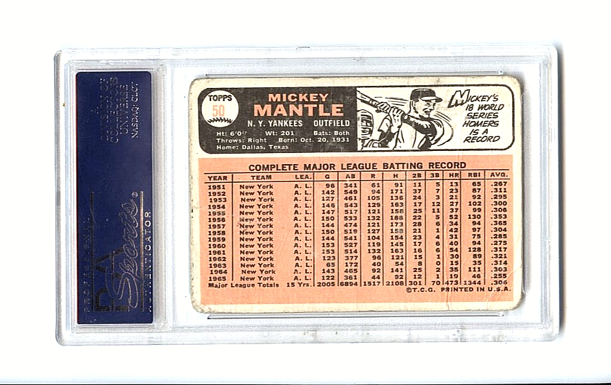 Topps 1966 Mickey Mantle #50 New York Yankees Vintage Base Set Baseball Card