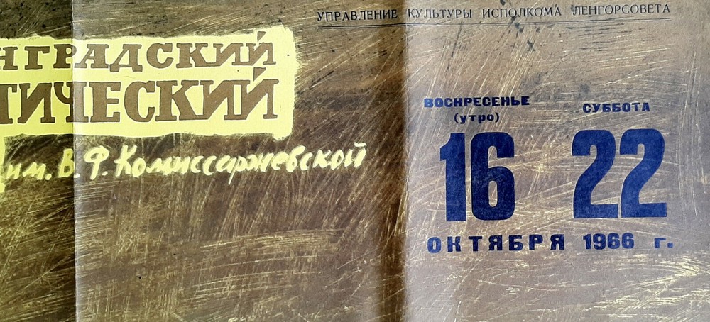 Original main slogan on the poster: ДЖОРДАНО БРУНО ЛЕНИНГРАДСКИЙ ДРАМАТИЧЕСКИЙ ТЕАТР ИМЕНИ В.Ф. КОМИССАРЖЕВСКОЙ ОЛЕГ ОКУЛЕВИЧ 16 ОКТЯБРЯ 1966 Г Literally English translation: GIORDANO BRUNO LENINGRAD DRAMA THEATER NAMED AFTER V.F. KOMISSARZHEVSKAYA OLEG OKULEVICH OCTOBER 16, 1966 POSTER ARTIST: AZIZYAN PRINT YEAR: 1966 PRINT RUN: 3.000 PUBLISHER: LENGORSOVET LANGUAGE: RUSSIAN SIZE: IN: 26 x 38.1/2 = CM: 67 x 98 CONDITION: FOLDED, GOOD ORDERED BY DEPARTMENT OF CULTURE OF THE EXECUTIVE COMMITTEE OF THE LENGORSOVET Listing and template services provided by inkFrog