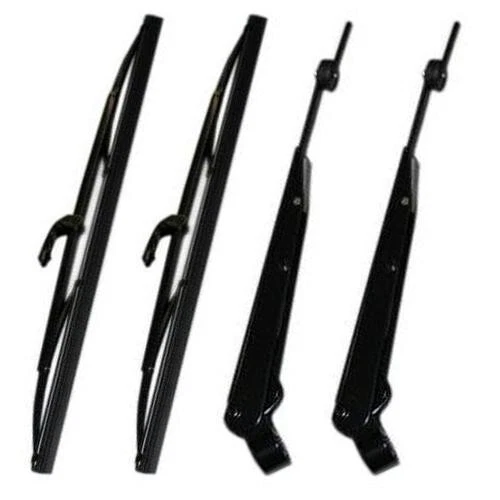 New BLACK STAINLESS STEEL Wiper Arm & Blade Kit for 66-77 Classic Ford Broncos and 48-52/56-60 Ford F Series Trucks. Includes two wiper arms and two wiper blades. These wiper arms and blades give you a similar look to stock blades with a few modern conveniences. Our wiper arms are adjustable in both length and angle to ensure you get the coverage you are looking for. They also now include a flip cam system that locks out when you lift the wiper arm off the windshield to allow you to clean your windshield without having to hold the wiper arm up manually. These also include a heavy duty spring which will keep the wiper blade down on the windshield when you are driving down the highway.