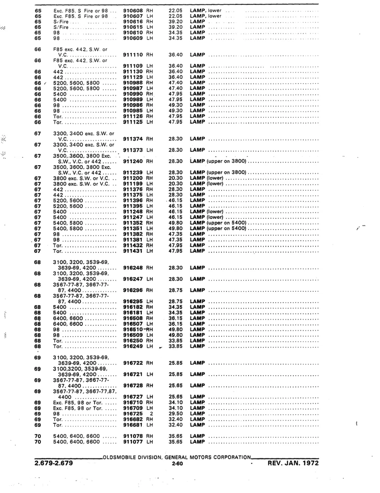 1967 Oldsmobile Delta 88 & Delta 88 Custom NOS GM Drivers Left Upper Tail Light Assy. GM part # 911351. You get lens-housing and seperate molding. Fusick Automotive Products
