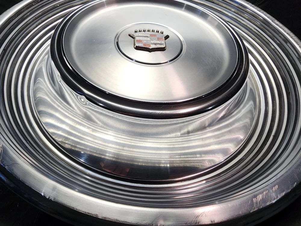 Vintage 40s 50s 60s 70s hub caps. 1968 - 1969 Cadillac single Original OEM Factory OE hubcaps wheel covers center caps. hubcap is pretty well scratched up with a few small dings, would be great for a ratrod or wall hanger. These are Used hubcaps off of old classic cars that were driven on the road and used, so please see photos for complete condition as they are not all perfect. Most have some fading, dings, scuffing, mineral staining, etc could use a good polishing to bring em back to full shine, but otherwise in beautiful condition. Check out more of my ebay page as we are going through and listing a ton of classic / vintage hubcaps from the the 20's 30's 40's 50's 60's 70's 80's 90's 00's and up. all different makes and models such as Ford Chevy Chevrolet GM Cadillac GMC camero nova Chevelle Nomad Bel Air Mercury Corvette Mustang Oldsmobile Pontiac Lincoln Dodge Plymouth Buick Chrysler Mopar Fairlane Volkswagen Cheiftain Challanger Charger 1500 4x4 muscle car hot rod rat rod Cars and Trucks 15in 14in 16in and so much more from full sets to sets of 2 and singles, you name it check us out!