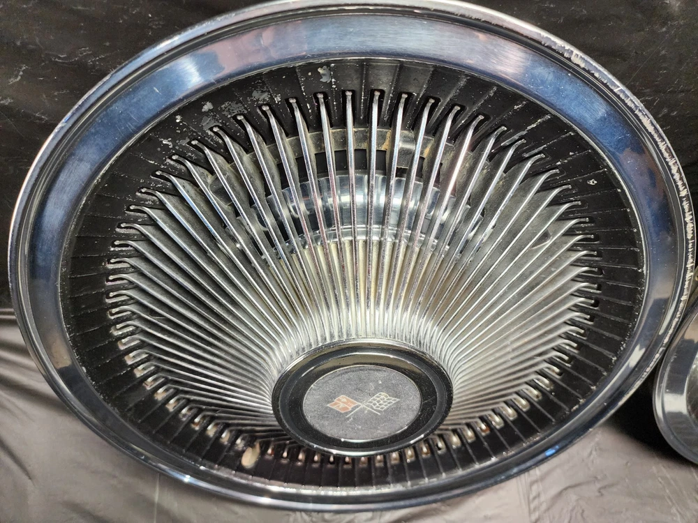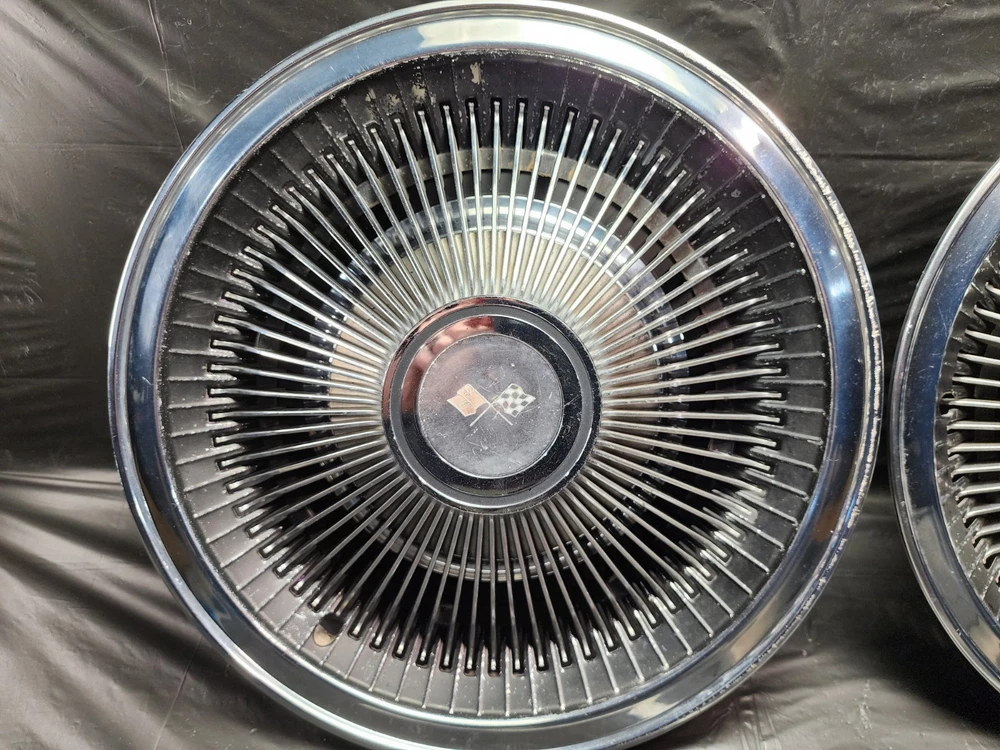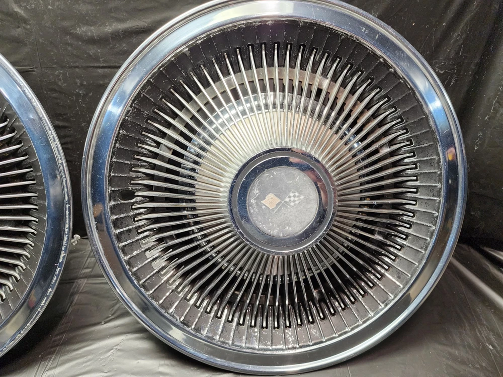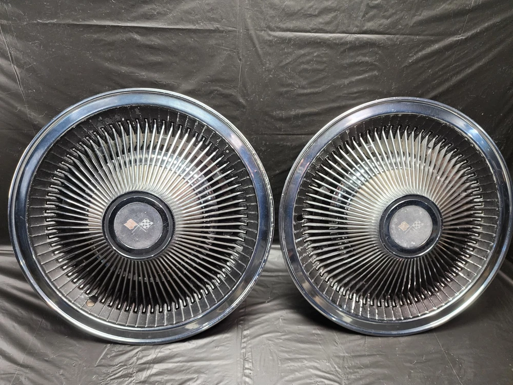 Number in Pack: 2 Type: Hub Cap Color: chrome OE/OEM Part Number: Ram Air I II III IV V Cowl Induction FI Fuel Injection LS6 Judge, Z11 ZR2 L-88 Stingray Mid-Year 3x2 2x4 Intake 215 V8 I6, Cougar GT-E Cobra Jet Thunderbird T-Bird Cyclone GTHO GT350R, Boss 429 Torino Talladega Thunderbolt Coyote AAR Cuda, Accessory Spotlight Fog Lamp Driving Light Fender Skirts Visor, Bumper Grill Guard Cruise Control Cigarette Lighter Ashtray, Vent Shades Window Venetian Blinds Compass Banjo Spinner Wheel, Locking Gas Cap Hood Ornament Flashlight Hood Ornament, Passing Peep Mirror Swamp Cooler A/C 8 Track Vacuum Dispenser, Fulton Guide Appleton Lorraine Trippe Foxcraft Fox Craft Santay, Dinsmore Trico Mculloch Auto-Lite Motorcraft Prestolite, Peckat Eelco Moon Equipped Thickstun Winfield Isky, Holley Carter Rochester Detroit Lubricator Stewart, Kelsey Hayes Motor Wheel Muncie Borg-Warner BW Delco-Remy, Date Code Numbers Matching Factory Original Period Correct, Concours Woody Club Coupe Cabriolet Fordor Tudor 32 Deuce, A-400 B-400 Baby Hemi Barn Find Fresh Beltline Bonnet, Bucket Bull Nose Carson Top Chopped Channeled Sectioned Dagmars, Dual Quad DuVall Fastback Aero Sedan Flathead Four Banger, Gasser Front Clip Doghouse Gear Box GOAT Grill Shell Hairpins, Highboy Hiboy Hopped Up HopUp Juice Brakes Knock Offs, Cragar Spoke Rim Wheel Louvers Lowboy Mag Moons Merc, Nailhead NOS Vintage Classic Old Original Phaeton Pony Car, Quarter Window Raked Hot Rat Rod Rockcrusher Rocket Rumble Seat, Running Board Scallops Scatter Shield Lakefield Scoop Sidemount, Six-Pack Slushbox Split Window Steelies Stacks Stove Bolt Stroker, Survivor Three on the Tree Touring Track T Tri-Five Tri-Power, Vicky Victoria Wedge Wheelie Bars Cross Member Motor Mount FE, T-Bucket Street Machine White Walls Bent Spoke Trailer Hitch, Resto Mod Corvette C1 C2 C3 Quick Change Candy Paint Finish: Polished Interchange Part Number: 1910 1911 1912 1913 1914 1915 1916 1917 1918 1919 1920 1921 1922, 1923 1924 1925 1926 1927 1928 1929 1930 1931 1932 1933 1934 1935, 1936 1937 19938 1939 1940 1941 1942 1946 1947 1948 1949 1950 1951, 1952 1953 1954 1955 1956 1957 1958 1959 1960 1961 1962 1963 1964, 1965 1966 1967 1968 1969 1970 1971 1972 1973 1974 1975 1976 1977, Buick Cadillac Pontiac Oldsmobile Chevrolet Oakland Durant Star, GMC White REO Autocar IHC International Sterling Dodge Fargo COE, Dodge Plymouth Chrysler DeSoto Mopar Car Truck Franklin Ford, Dodge Brother Mercury Lincoln Edsel AMC Rambler Studebaker JEEP, Hudson Willys Graham Nash Opel Viking Durant Star Auburn LaSalle, Pierce Arrow Erskine Essex Hillman Kissel Marmon Peerless Rockne, Stutz Triumph MG Jaguar Stoewer Cord Jordan Lorraine, Accessory Interior Exterior Option Dealer Factory Part Install, Rare Scarce Add-On Optional Chrome Painted Nickel Plated Satin, Fender Hood Trunk Door Rocker Roof Factory Wheel Rim Tail Light, Headlight Backup Light Lamp Glass Windshield Gas Tank Door Trim, Molding Ornament Emblem Mascot Mirror Grill Grille Spear, Interior Seat Dash Gauge Panel Cluster Radio Stereo Speaker Dial, Door Panel Arm Rest Steering Column Shifter Console Bucket Seats, Power Bench Seat Glove Box Door Speedometer Oil Pressure Ampere, Temperature Fuel Gas Gauge Tachometer Tach Dome Light Handle, Power Locks Window Regulator Door Lock Latch Knob Steering Wheel, Horn Button Shifter Spotlight Visor Headliner Convertible Top, Engine Motor Head Intake Exhaust Manifold Oil Pan Water Pump Fan, Radiator Hose Core Support Block Bolt Hardware Camshaft Crank Cam, Crankshaft Shaft Bearing Main Rod Piston Cap Sleeve Cylinder, Power Steering Alternator Generator Distributor Coil Ignition, Plug Wires Cap Points Condenser Contact Rotor Carburetor Carb, 1BBL 2BBL 4BBL One Two Four Barrel Air Cleaner Oil Bath Filter, Relay Voltage Regulator Wiper Motor Washer Pump 6V 12V Wiring Brand: Chevrolet Manufacturer Part Number: Standard 10 12 Bolt Posi Locker Torque Driveshaft Universal Joint, Transmission 3 4 Three Four Speed Overdrive Automatic Manual, Hinge Strut Shock Control Arm Steering Suspension Ball Joint, Upper Lower Belt Inner Fender Panel Cowl Firewall Cable Vent Horn, Restore Repair Rebuild Replace Harmonic Balancer Pulley Bracket, 5 6 8 Five Six Eight Lug Steel Wheel Rim 14 15 16 Offset Hubcap, Wheel Cover Dog Dish Poverty Cap Redline Bias Ply, Valance Panel Spoiler Extension Patch Deck Lid Trunk Spare, Camaro Chevelle Impala Belair Biscayne Caprice One-Fifty Two-Ten, Nomad Chevelle Malibu Nova Chevy II Monte Carlo Laguna, 3100 3600 3800 C/K C10 C20 C30 K10 K20 K30 1/2 3/4 1 Ton, Pickup Fleetside Stepside Tailgate Bed Box Truck Cameo, Fleetline Stylemaster Styleline Special Deluxe Master 85, Coupe Sedan Convertible Roadster Delivery Wagon Suburban, Carry All Corvette Vette Corvair Delray Yeoman, GTO Tempest Lemans Catalina Bonneville Star Chief Silver Streak, Streamliner Ventura Executive Firebird Strato Chief, Century Special Super Roadmaster 40 50 60 70 80 90 Series, GS Skylark Riviera Wildcat LeSabre Electra 225, 442 Cutlass F85 Starfire Delta 88 98 Dynamic, Mustang Falcon Fairlane Galaxie XL 500 LTD Torino, Maverick Starliner Deluxe Shoebox Custom Cobra GT 350 500, Barrcuda Cuda GTX Satellite Belvedere Plaza Fury Roadrunner, Charger Challenger Coronet Polara Monaco Duster Dart Scamp, Superbee Daytona Mopar 426 440 383 Hemi, Small Big Block Inline Straight 6 8 Six Eight Slant, 207 216 235 261 265 283 302 307 327 350 396 402 427 454, 170 200 250 270 289 302 351 390 428 429 SCJ, 226 272 273 292 318 340 360 361 383 413 426 440, SS Super Sport 348 409 ZL1 Z16 L34 L78 RPO Yenko COPO Material: Chrome, Stainless Steel, Steel Placement on Vehicle: Front, Left, Rear, Right Vintage Part: Yes Superseded Part Number: Tattersfield Weiand Man A Fre Offy Offenhauser Stromberg 97, Powerglide Ford-O-Matic M22 T-5 T-10 Wingnut Gasket Housing, Cast Iron Aluminum Die-Cast Brass Copper Stamped Steel, Sheet Metal Body Panel Curb Feeler Rod Holder Tappet Rocker Arm, Filter Element Brake Booster Disc Drum Caliper Sq