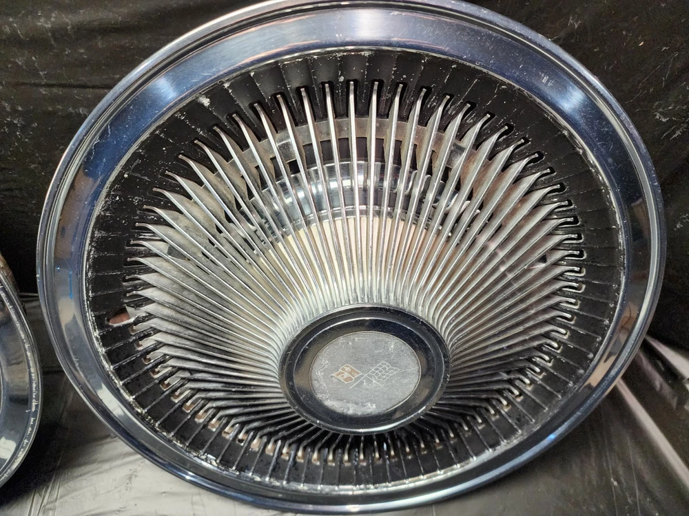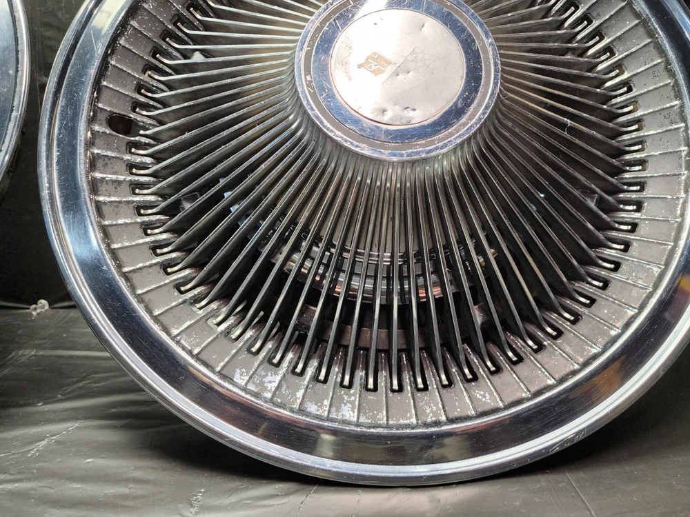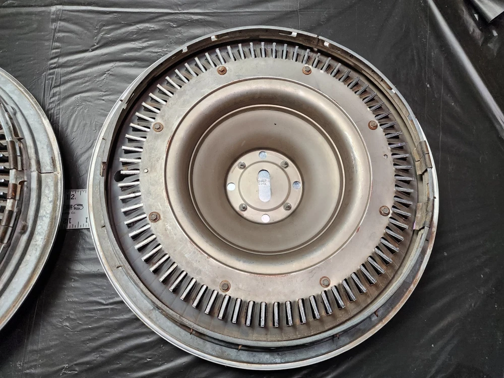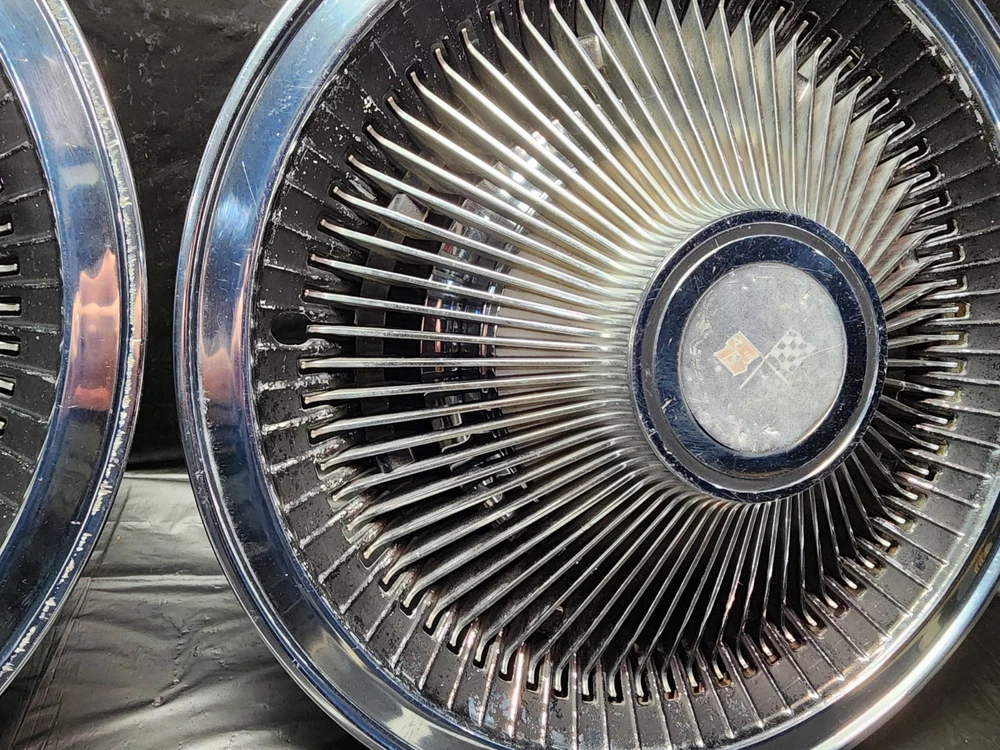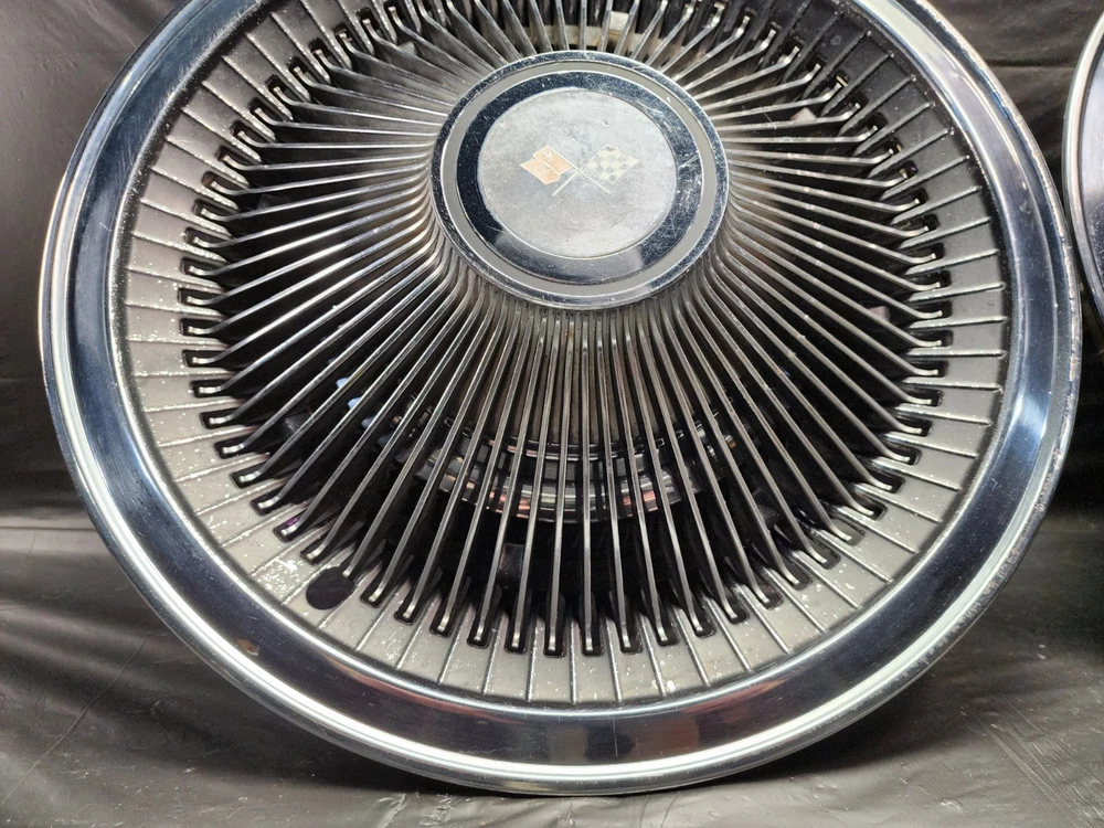 Number in Pack: 2 Type: Hub Cap Color: chrome OE/OEM Part Number: Ram Air I II III IV V Cowl Induction FI Fuel Injection LS6 Judge, Z11 ZR2 L-88 Stingray Mid-Year 3x2 2x4 Intake 215 V8 I6, Cougar GT-E Cobra Jet Thunderbird T-Bird Cyclone GTHO GT350R, Boss 429 Torino Talladega Thunderbolt Coyote AAR Cuda, Accessory Spotlight Fog Lamp Driving Light Fender Skirts Visor, Bumper Grill Guard Cruise Control Cigarette Lighter Ashtray, Vent Shades Window Venetian Blinds Compass Banjo Spinner Wheel, Locking Gas Cap Hood Ornament Flashlight Hood Ornament, Passing Peep Mirror Swamp Cooler A/C 8 Track Vacuum Dispenser, Fulton Guide Appleton Lorraine Trippe Foxcraft Fox Craft Santay, Dinsmore Trico Mculloch Auto-Lite Motorcraft Prestolite, Peckat Eelco Moon Equipped Thickstun Winfield Isky, Holley Carter Rochester Detroit Lubricator Stewart, Kelsey Hayes Motor Wheel Muncie Borg-Warner BW Delco-Remy, Date Code Numbers Matching Factory Original Period Correct, Concours Woody Club Coupe Cabriolet Fordor Tudor 32 Deuce, A-400 B-400 Baby Hemi Barn Find Fresh Beltline Bonnet, Bucket Bull Nose Carson Top Chopped Channeled Sectioned Dagmars, Dual Quad DuVall Fastback Aero Sedan Flathead Four Banger, Gasser Front Clip Doghouse Gear Box GOAT Grill Shell Hairpins, Highboy Hiboy Hopped Up HopUp Juice Brakes Knock Offs, Cragar Spoke Rim Wheel Louvers Lowboy Mag Moons Merc, Nailhead NOS Vintage Classic Old Original Phaeton Pony Car, Quarter Window Raked Hot Rat Rod Rockcrusher Rocket Rumble Seat, Running Board Scallops Scatter Shield Lakefield Scoop Sidemount, Six-Pack Slushbox Split Window Steelies Stacks Stove Bolt Stroker, Survivor Three on the Tree Touring Track T Tri-Five Tri-Power, Vicky Victoria Wedge Wheelie Bars Cross Member Motor Mount FE, T-Bucket Street Machine White Walls Bent Spoke Trailer Hitch, Resto Mod Corvette C1 C2 C3 Quick Change Candy Paint Finish: Polished Interchange Part Number: 1910 1911 1912 1913 1914 1915 1916 1917 1918 1919 1920 1921 1922, 1923 1924 1925 1926 1927 1928 1929 1930 1931 1932 1933 1934 1935, 1936 1937 19938 1939 1940 1941 1942 1946 1947 1948 1949 1950 1951, 1952 1953 1954 1955 1956 1957 1958 1959 1960 1961 1962 1963 1964, 1965 1966 1967 1968 1969 1970 1971 1972 1973 1974 1975 1976 1977, Buick Cadillac Pontiac Oldsmobile Chevrolet Oakland Durant Star, GMC White REO Autocar IHC International Sterling Dodge Fargo COE, Dodge Plymouth Chrysler DeSoto Mopar Car Truck Franklin Ford, Dodge Brother Mercury Lincoln Edsel AMC Rambler Studebaker JEEP, Hudson Willys Graham Nash Opel Viking Durant Star Auburn LaSalle, Pierce Arrow Erskine Essex Hillman Kissel Marmon Peerless Rockne, Stutz Triumph MG Jaguar Stoewer Cord Jordan Lorraine, Accessory Interior Exterior Option Dealer Factory Part Install, Rare Scarce Add-On Optional Chrome Painted Nickel Plated Satin, Fender Hood Trunk Door Rocker Roof Factory Wheel Rim Tail Light, Headlight Backup Light Lamp Glass Windshield Gas Tank Door Trim, Molding Ornament Emblem Mascot Mirror Grill Grille Spear, Interior Seat Dash Gauge Panel Cluster Radio Stereo Speaker Dial, Door Panel Arm Rest Steering Column Shifter Console Bucket Seats, Power Bench Seat Glove Box Door Speedometer Oil Pressure Ampere, Temperature Fuel Gas Gauge Tachometer Tach Dome Light Handle, Power Locks Window Regulator Door Lock Latch Knob Steering Wheel, Horn Button Shifter Spotlight Visor Headliner Convertible Top, Engine Motor Head Intake Exhaust Manifold Oil Pan Water Pump Fan, Radiator Hose Core Support Block Bolt Hardware Camshaft Crank Cam, Crankshaft Shaft Bearing Main Rod Piston Cap Sleeve Cylinder, Power Steering Alternator Generator Distributor Coil Ignition, Plug Wires Cap Points Condenser Contact Rotor Carburetor Carb, 1BBL 2BBL 4BBL One Two Four Barrel Air Cleaner Oil Bath Filter, Relay Voltage Regulator Wiper Motor Washer Pump 6V 12V Wiring Brand: Chevrolet Manufacturer Part Number: Standard 10 12 Bolt Posi Locker Torque Driveshaft Universal Joint, Transmission 3 4 Three Four Speed Overdrive Automatic Manual, Hinge Strut Shock Control Arm Steering Suspension Ball Joint, Upper Lower Belt Inner Fender Panel Cowl Firewall Cable Vent Horn, Restore Repair Rebuild Replace Harmonic Balancer Pulley Bracket, 5 6 8 Five Six Eight Lug Steel Wheel Rim 14 15 16 Offset Hubcap, Wheel Cover Dog Dish Poverty Cap Redline Bias Ply, Valance Panel Spoiler Extension Patch Deck Lid Trunk Spare, Camaro Chevelle Impala Belair Biscayne Caprice One-Fifty Two-Ten, Nomad Chevelle Malibu Nova Chevy II Monte Carlo Laguna, 3100 3600 3800 C/K C10 C20 C30 K10 K20 K30 1/2 3/4 1 Ton, Pickup Fleetside Stepside Tailgate Bed Box Truck Cameo, Fleetline Stylemaster Styleline Special Deluxe Master 85, Coupe Sedan Convertible Roadster Delivery Wagon Suburban, Carry All Corvette Vette Corvair Delray Yeoman, GTO Tempest Lemans Catalina Bonneville Star Chief Silver Streak, Streamliner Ventura Executive Firebird Strato Chief, Century Special Super Roadmaster 40 50 60 70 80 90 Series, GS Skylark Riviera Wildcat LeSabre Electra 225, 442 Cutlass F85 Starfire Delta 88 98 Dynamic, Mustang Falcon Fairlane Galaxie XL 500 LTD Torino, Maverick Starliner Deluxe Shoebox Custom Cobra GT 350 500, Barrcuda Cuda GTX Satellite Belvedere Plaza Fury Roadrunner, Charger Challenger Coronet Polara Monaco Duster Dart Scamp, Superbee Daytona Mopar 426 440 383 Hemi, Small Big Block Inline Straight 6 8 Six Eight Slant, 207 216 235 261 265 283 302 307 327 350 396 402 427 454, 170 200 250 270 289 302 351 390 428 429 SCJ, 226 272 273 292 318 340 360 361 383 413 426 440, SS Super Sport 348 409 ZL1 Z16 L34 L78 RPO Yenko COPO Material: Chrome, Stainless Steel, Steel Placement on Vehicle: Front, Left, Rear, Right Vintage Part: Yes Superseded Part Number: Tattersfield Weiand Man A Fre Offy Offenhauser Stromberg 97, Powerglide Ford-O-Matic M22 T-5 T-10 Wingnut Gasket Housing, Cast Iron Aluminum Die-Cast Brass Copper Stamped Steel, Sheet Metal Body Panel Curb Feeler Rod Holder Tappet Rocker Arm, Filter Element Brake Booster Disc Drum Caliper Sq