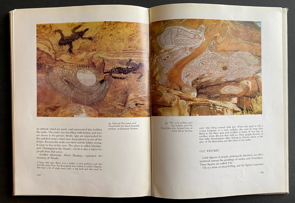 Express Shipping Worldwide is Free The Art of the Wandjina: Aboriginal Cave Paintings in Kimberley, Western Australia By I. M. Crawford Published by Oxford University Press , Melbourne, 1968 First Edition, with the dustjacket, in Like New condition With 48 colour and 37 black and white plates, several text drawings, bibliography, and index. This is what the volume covers: 1. Wandjina belief system The book explains the cosmological and religious significance of the Wandjina: Their role in the Dreaming (or Dreamtime) Their association with rain, storms, and life-giving forces Their continued presence as living spiritual forces, not merely historical myths Crawford emphasises that Wandjina are active ancestral beings, whose images must be cared for and ritually maintained. 2. Rock art traditions of the Kimberley A major component of the book is a systematic study of Wandjina rock paintings, including: Locations and cave shelters where Wandjina images appear Stylistic conventions (large white faces, black eyes, halo-like headdresses) The absence of mouths, often interpreted as symbolising spiritual power and restraint The book documents both ancient and more recently repainted figures, showing the continuity of the tradition. 3. Ritual maintenance and repainting One of the book’s most important contributions is its documentation of: The ongoing repainting of Wandjina images by Traditional Owners The belief that neglecting these images could lead to drought, disorder, or misfortune The integration of art, ritual obligation, and land stewardship This challenged earlier Western assumptions that rock art was purely archaeological rather than living cultural practice. 4. Artistic technique and materials The book details: Natural pigments (ochres, clays, charcoal) Painting methods and surfaces The relationship between material choices and spiritual meaning Art is presented not as individual expression, but as collective cultural responsibility governed by law and tradition. 5. Interpretive framework Written in 1968, the book reflects the anthropology of its time but is notable for: Treating Aboriginal art as intellectually and spiritually complex Rejecting the idea of “primitive art” Recognising Indigenous explanations and authority as central to interpretation While later scholarship has refined and corrected aspects of early anthropological framing, the book remains foundational. In thick material hardcover, in 144 pages, with the dustjacket. The Dustjacket: There is some shelfwear. There is no sunning. There is no foxing. It has not been price-clipped. The Book: There is no sunning. There is no foxing. There is a small neat previous owner's name to the front blank endpaper. All plates are bright, fresh and crisp. There are no missing, loose, damaged, stained, or creased pages. The binding and block are very good. It is complete and original. Measures 18.5cm x 25.5cm. A beautiful edition. EXPRESS SHIPPING AND HANDLING is Free Worldwide All items are securely and well packed. Thank you for viewing my item.
