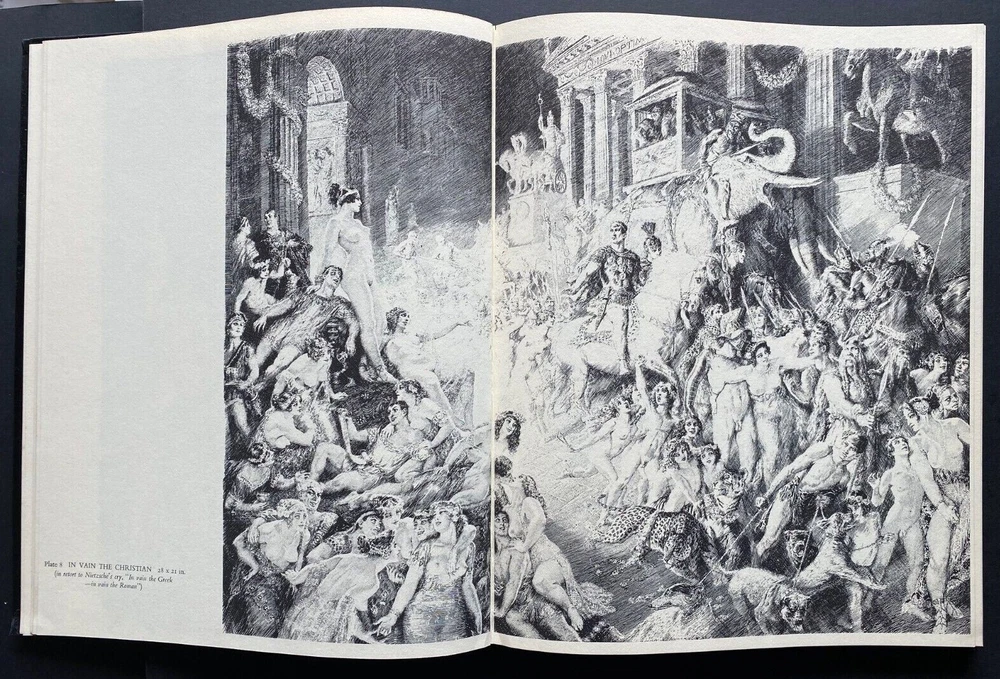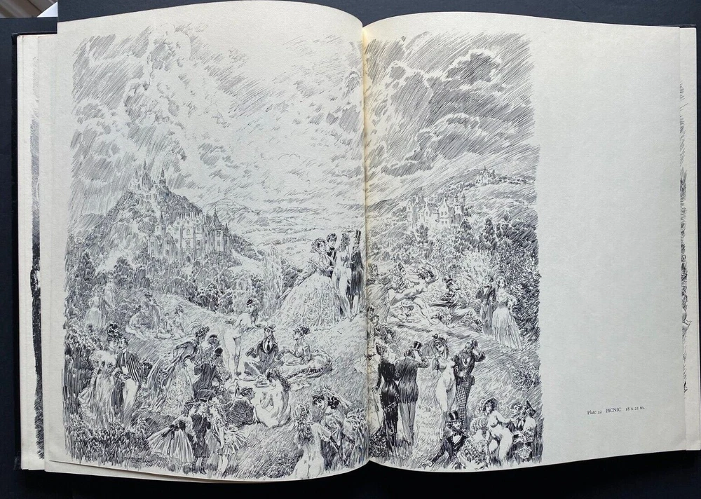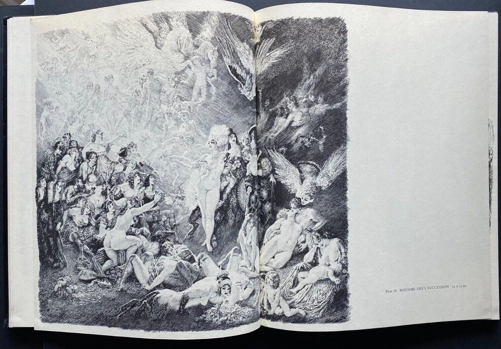Express Shipping Worldwide is Free Norman Lindsay Selected Pen Drawings Published by Bonanza Books, New York, 1968 First Edition, with the dustjacket There is some reflection in the photographs. With 60 full-page plates covering Norman Lindsay's most brilliant pen drawings – some beautiful images. Due to the lighting only, the centre of some double page works appear yellow - there is no yellow, they are in perfect condition. 54 of t he plates are blank on the rear with six of the plates each spanning one and a half pages. Fifty of these had not been published previously - a beautiful set of works . The unpublished work comprises fourteen drawings made in 1967-68 with other major works done between 1930 and the 1960s. Also previously unpublished are thirteen bright and witty drawings based on the Heptameron of Marguerite of Navarre . Selections from previously published drawings are added to make the book representative of all phases of the artist's work in this medium. Norman Lindsay also contributes an illuminating preface on the art of pen and ink. These are the plates: Old Paris Forward The Circus Down To The Walpurgis Victory The Devil Is A Gentleman The Rival Magicians In Vain The Christian Evolution Bacchusina Flight Port Of Heaven In The Beginning The Duke Gives A Party The Good Earth Merchandise "My Dear, The Gods Appear To Think It Necessary" Madam Life's Succession Capturing The Capturers The Curtain Of Tomorrow Little Loves Picnic Pastoral Homage To Balzac Laughter The Man Whom Men Hate Roysterers Evoked Witches' Sabbath Make What You Will Out Of It Dull Dogs And Gay Devils The Frightened People Challenge To Adultery "Contes Drolatiques" When Pan Pipes Lady Whims Gives A Party Woman's Art Duality The Prophet Of Doom Lysistrata And The Old Men Lysistrata And The Women The Infuriated Husband The Triumphal March Circe And Encolpius An Old Vegetable Woman Stop Thief The Disturbance An Appointment With Death A Lady's Revenge On A Unfaithful Husband Even The Most Dangerous Husbands Are Not Proof Against A Woman's Wit Ordeal No. 2 For The Chaste Lover How A Gentleman Was Cured Of A Love For His Lady A Declaeration Of Love Without Speech A Lady Is Cured for Her Passion For A Priest The Hobgoblin Caught How Prunes May Be Gathered In A Cherry Garden How An Ingenious Husband Proved Himself Innocent Of Playing Pranks With His Wife's Servant The Lady Who Only Laughed How An Apothecary Made Base Use Of A Sugar Loaf The Chase This book will be an essential and a cherished possession for every collector, every student of pen and ink, and every lover of the fine arts at their finest. In 130 pages in a large format in black cloth hardcover with titles in gilt to the spine. The Dustjacket: There is shelfwear and handling wear, with some clear archival tape repaired closed tears to the dustjacket. There is light scattered foxing to the inside of the dustjacket. There is no sunning. The Book: There is no shelfwear. There are old tape remnants to the pastedowns. There is a bookplate to the front pastedown otherwise there are no previous owners' names or inscriptions. There is no sunning. There is light scattered foxing to the first six leaves and to the last two leaves, and then very light occasionally. There are no missing, loose, creased, damaged, or stained pages. The spine and binding are solid. It is complete and original. Measures 24.5cm x 30.5cm (9.78" x 12"). EXPRESS SHIPPING AND HANDLING is Free Worldwide All items are securely and well packed. Thank you for viewing my item.