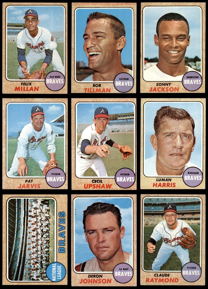 This 1968 Topps Braves team set is a fantastic piece of baseball history! Loved the mix of legends like Hank Aaron and Joe Torre alongside rising stars. The cards are in solid VG/EX condition with great vintage appeal. The NL leader cards featuring Aaron, Clemente, and others are especially cool. Perfect for any Braves fan or vintage collector—definitely worth adding to your collection!