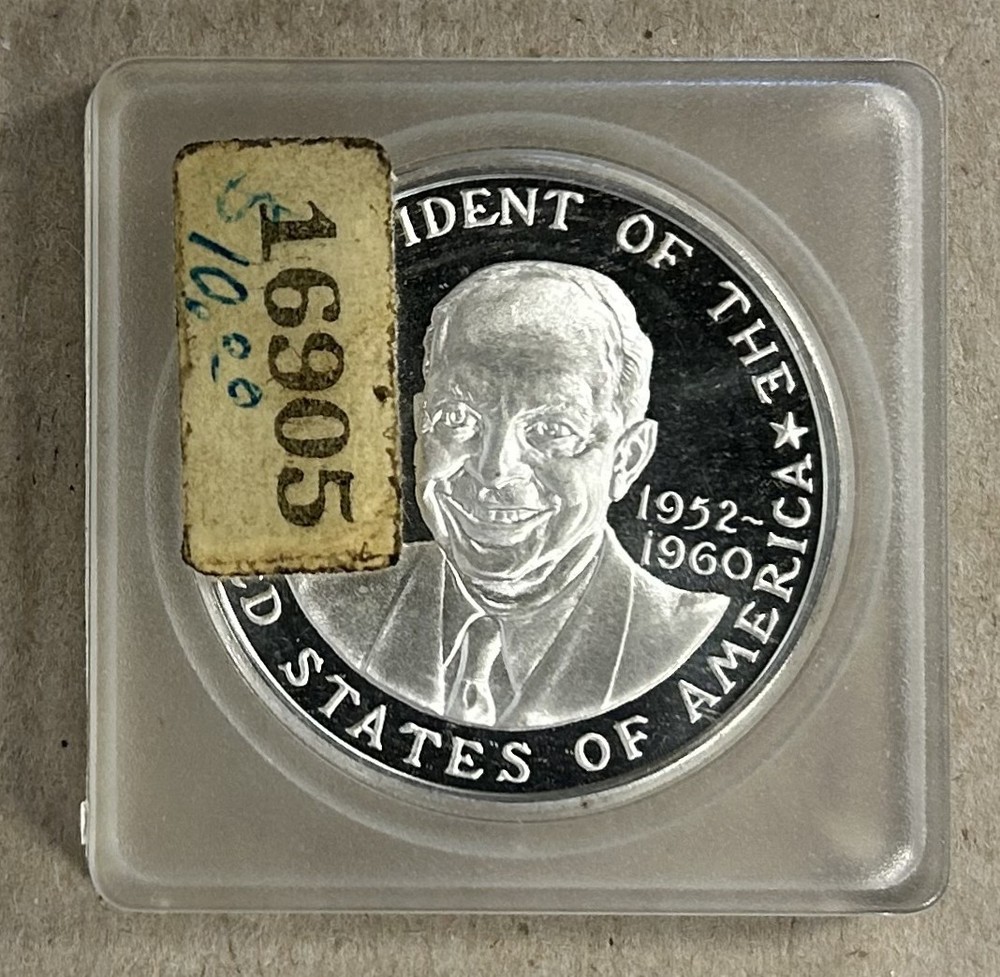 This is a 1969 DWIGHT D EISENHOWER MEMORIAL .999 SILVER MEDAL ENGRAVED BY KAREN WORTH . The Medal is made from 27.6 GRAMS OF .999 FINE SILVER , is in Uncirculated Condition, and comes in a the Original Plastic Case . Please email with any questions. May combine items to save on shipping. Returns allowed within 14-days as listed below. ANA & APS Member for more than 40 years. GOOD LUCK!!!