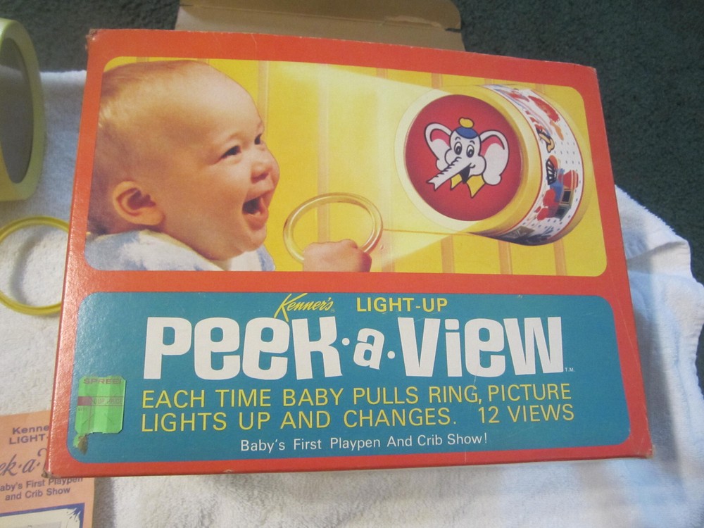 This vintage 1969 Kenner Peek a View pull toy is a fun retro find for collectors! It comes with the original box and instructions (some writing on back), though the light doesn’t work—just needs a new bulb. The pull mechanism still advances the strip, so it’s an easy fix. Sold as-is, but great potential for restoration. Perfect for nostalgic toy lovers! Multiple purchases can save on shipping—check photos for details.