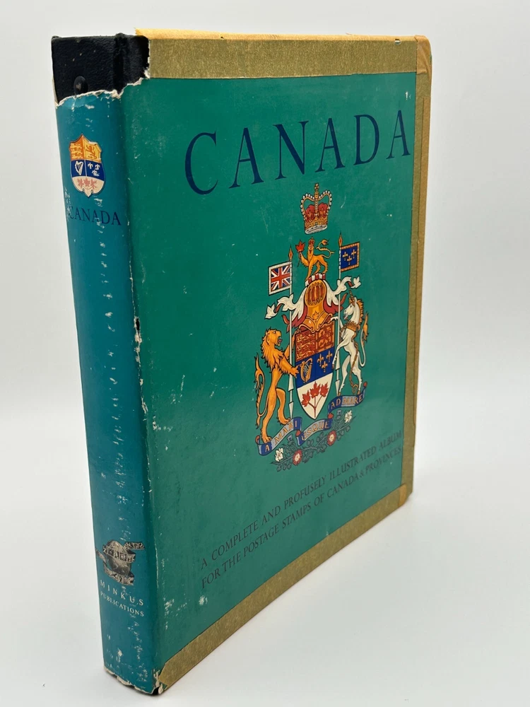 Discover the beauty of Canadian philately with this 1969 Minkus Canada Stamp Album, a comprehensive collector’s item for Canadian and provincial postage stamps. Profusely illustrated, this album is perfect for stamp collectors seeking a vintage piece to showcase their collection of Canadian stamps, including historical anniversaries and events. The binder format offers space to organize and display stamps with ease, while the classic cover design adds a touch of nostalgia to any collection. Perfect for history buffs and philatelists alike!