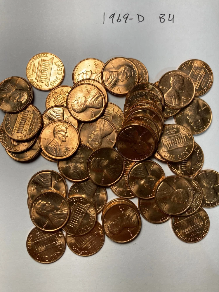 You are purchasing a full roll, 50 coins, of 1969-D Lincoln memorial cents that are in BU condition. The photo shows a typical roll of the rolls that I am selling. I have several of these rolls to sell.