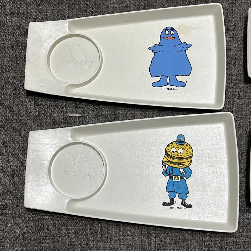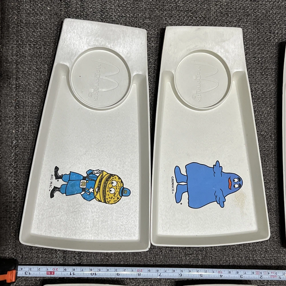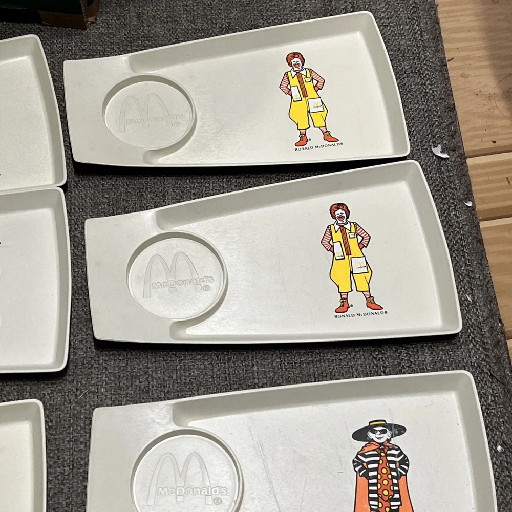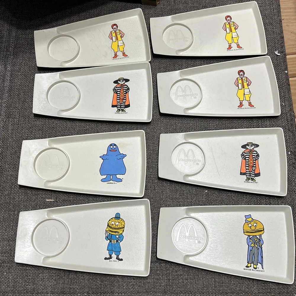 1970's, McDonald's ,Plastic Kids Meal Trays/Plates (Set of 8), Scarce /Vintage. Photos show everything. Rulers for size reference All are in good to great condition. With some knife scratches from everyday breakfast uses. Been stored away for decades in smoke-free, pet-free sun-free, mold-free environment McDonald Characters on trays/plates: Ronald mcDonalds (x3) grimace Hamburlgar (x2) Big Mac Mayor McCheese
