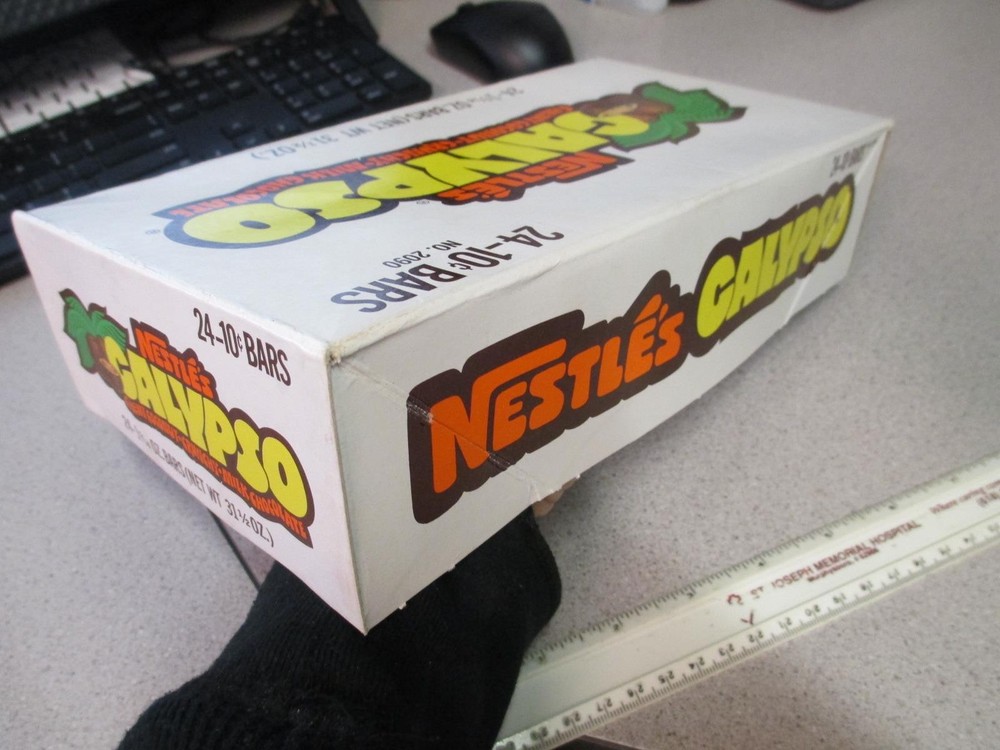 This vintage Nestlé's Calypso candy box display is a rare gem! Unused and in amazing condition, it’s a nostalgic piece straight from the '70s, sourced from a former Nestlé employee. The coconut chocolate bar may be long gone, but this display is a unique collector's dream—hard to find in any condition, let alone this pristine. Perfect for retro candy memorabilia fans! Don’t miss the chance to own a slice of candy history.