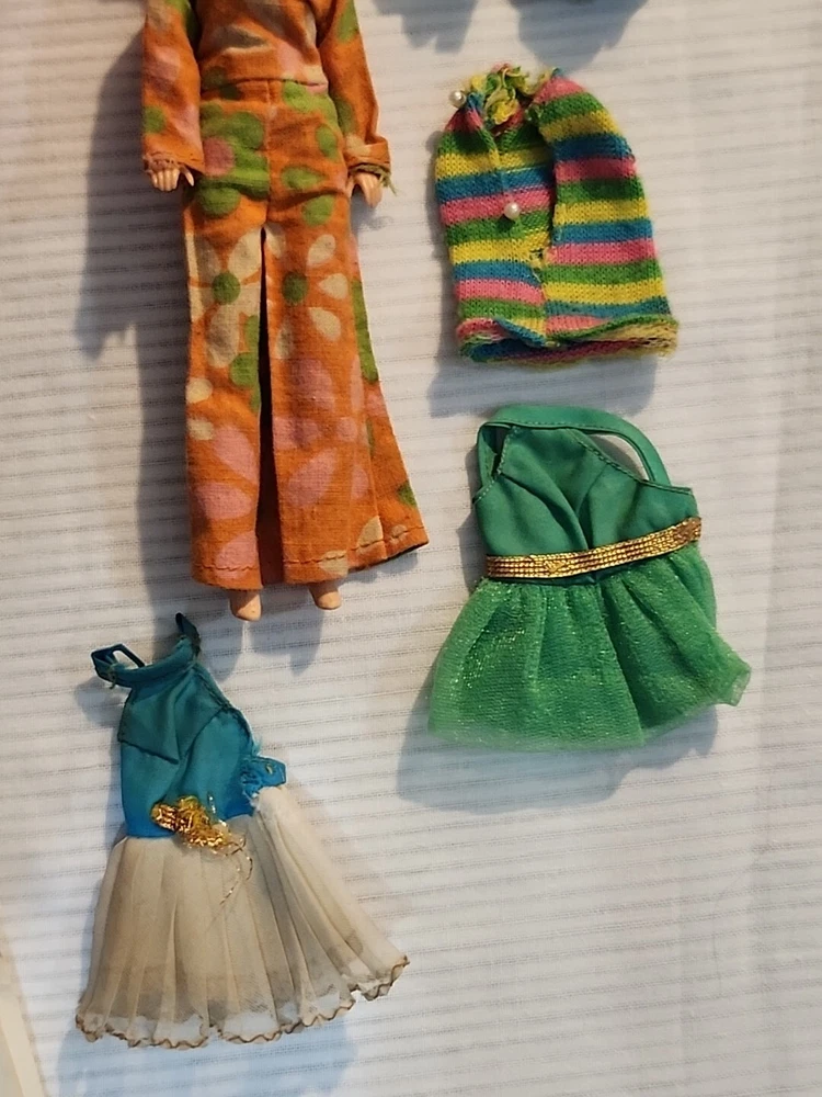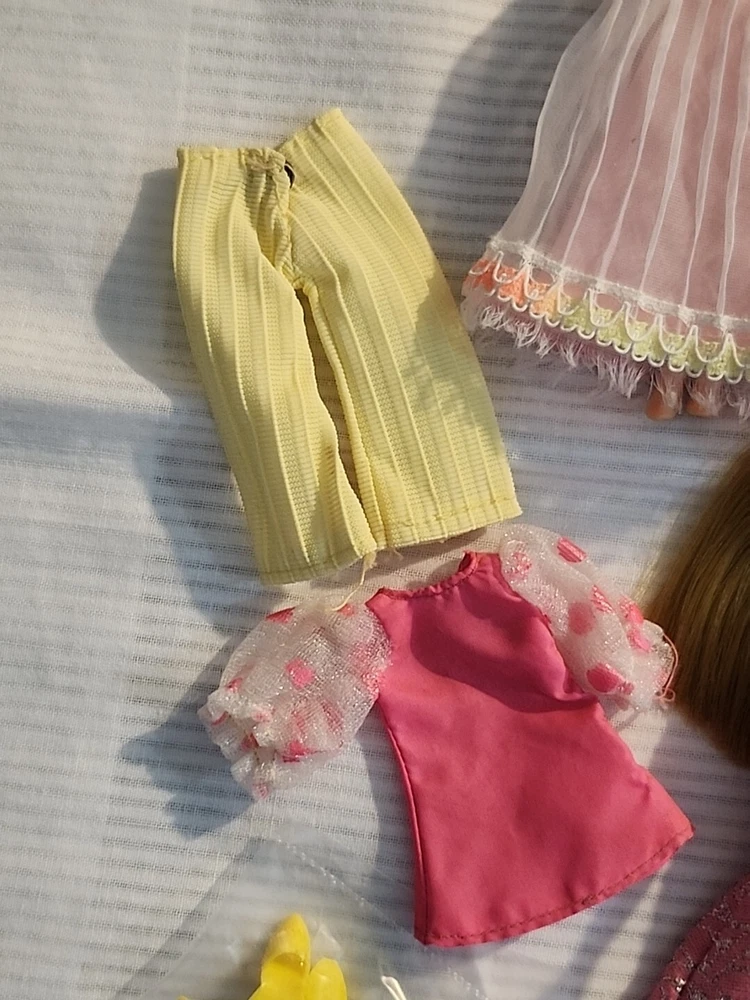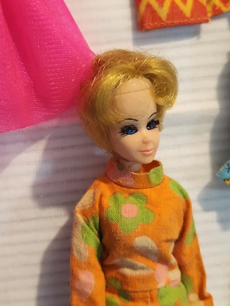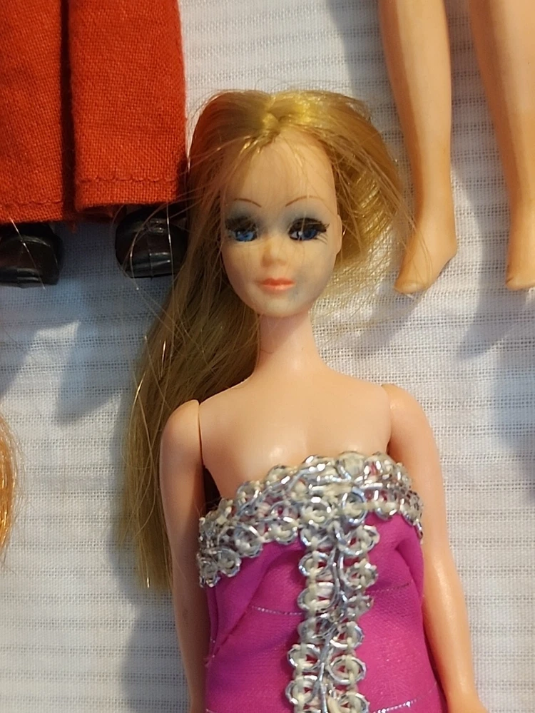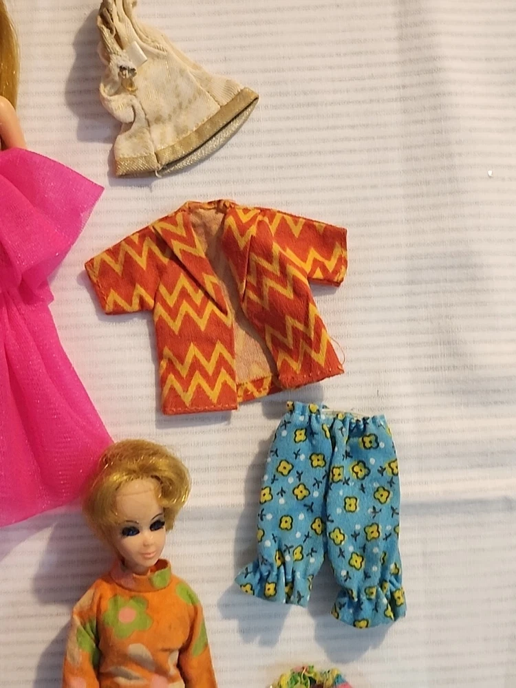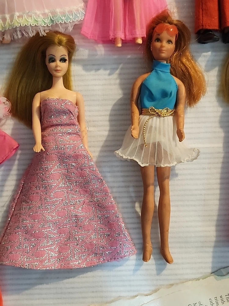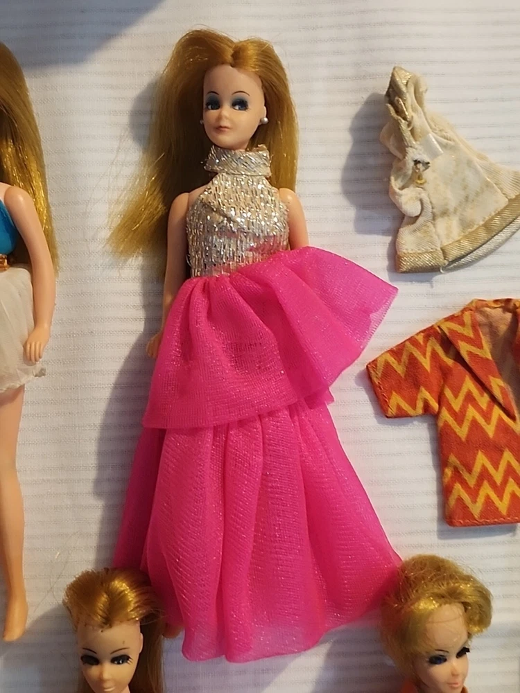 Nice size lot of Dawn and friends' dolls, clothing, carrying case and some news articles. The lot includes: 10 dolls dressed in original clothing Extra clothing and a pair of shoes carrying case - excellent shaped BUT the handle has broken off clipped news articles from previous owner