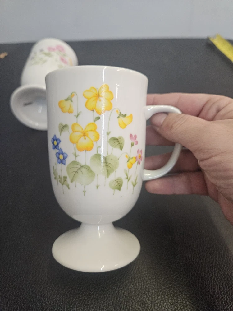 Add some retro charm to your tea time with this set of two vintage 1970s porcelain mugs. These mugs feature a colorful floral design, perfect for all occasions. With a capacity of 12oz, they are ideal for hot or cold beverages, and come with a tea cup, perfect for serving tea. The mugs are made in Japan and are perfect for collectors, with their vintage and original design. The set includes two mugs, each with a normal glass type, and is suitable for both teens and adults. Enjoy your tea time with these unique and stylish mugs, which are sure to impress your guests.