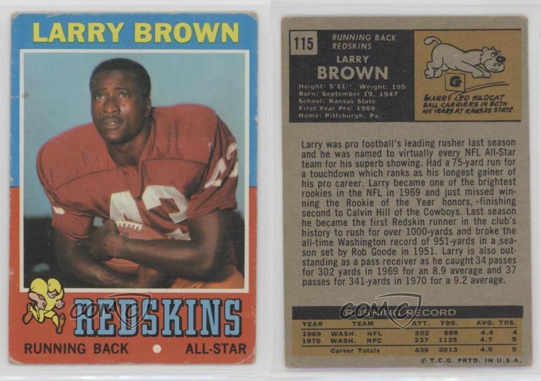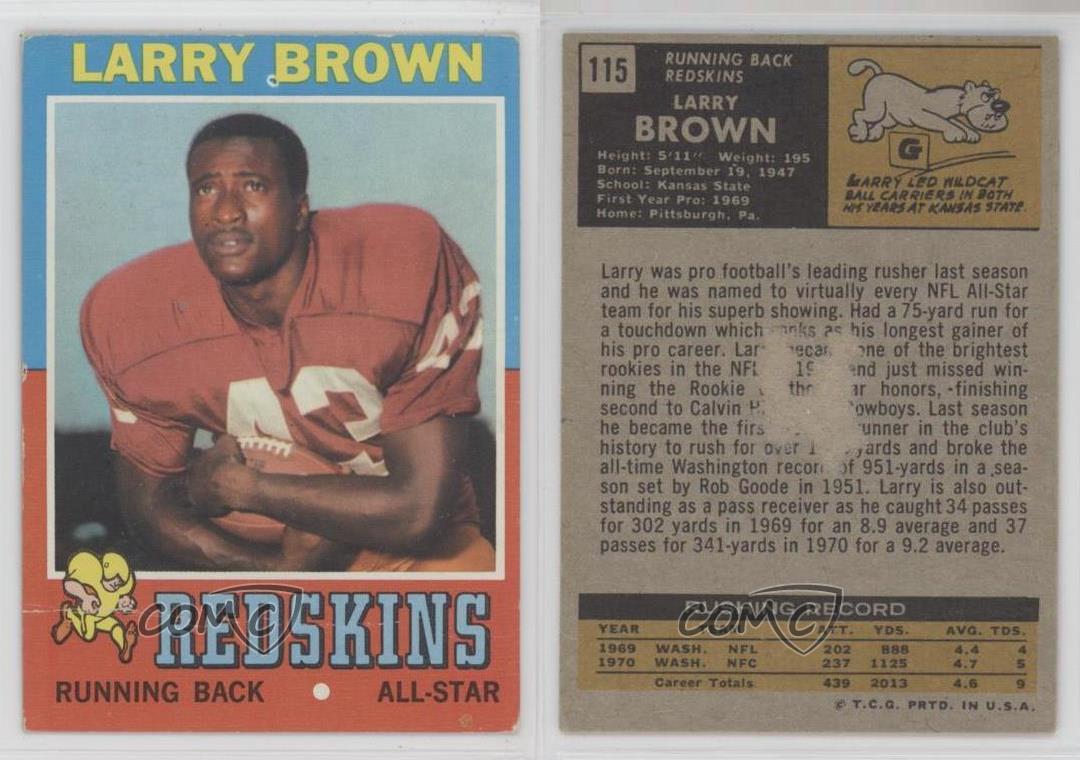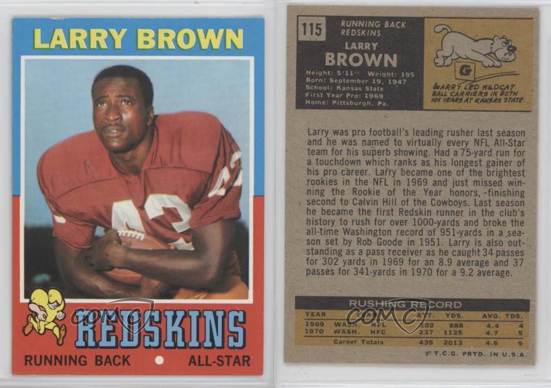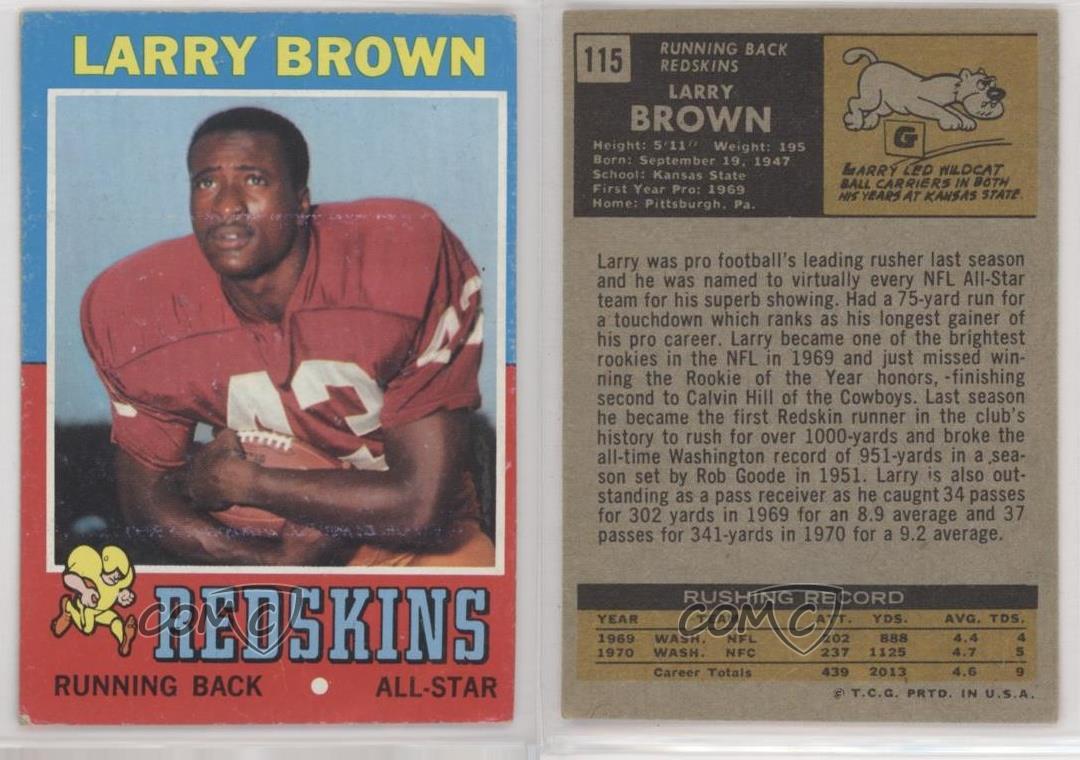 This vintage 1971 Topps football card is a must-have for collectors! Featuring Washington Redskins legend Larry Brown in crisp condition, it captures a piece of NFL history. The classic design and sharp image make it stand out in any collection. COMC delivers quality trading cards with trusted service—highly recommended for sports memorabilia fans!