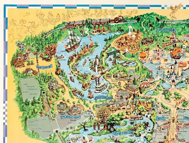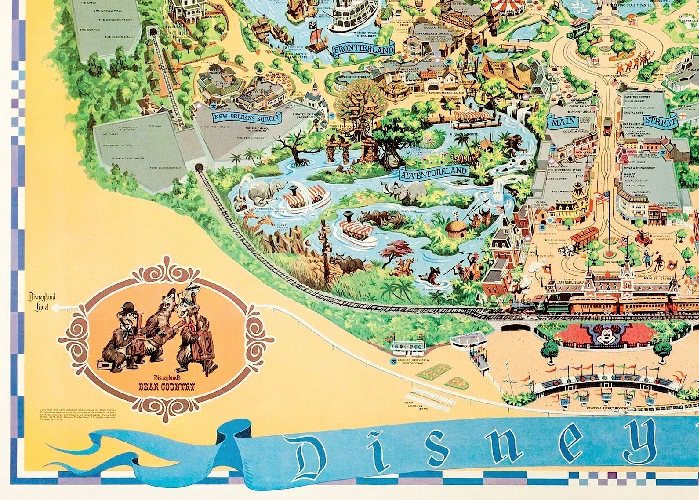 1972 Disney Disneyland Fun Map Poster Country Bear Jamboree Callout MATTE 13x19