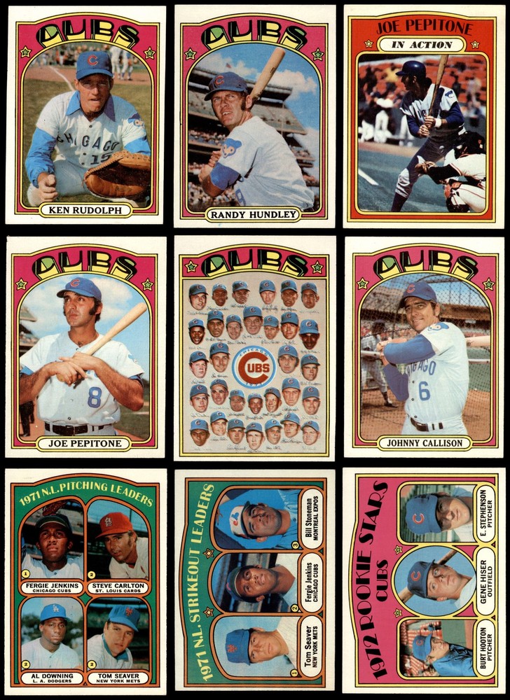 This 1972 Topps Cubs near-team set is a fantastic find for collectors! The cards are in great condition, ranging from VG/EX to NM/MT, featuring key players like Fergie Jenkins, Glenn Beckert, and Steve Carlton. The mix of action shots, rookie cards, and league leaders adds great variety. A must-have for Cubs fans or vintage baseball card enthusiasts—solid value for the quality!
