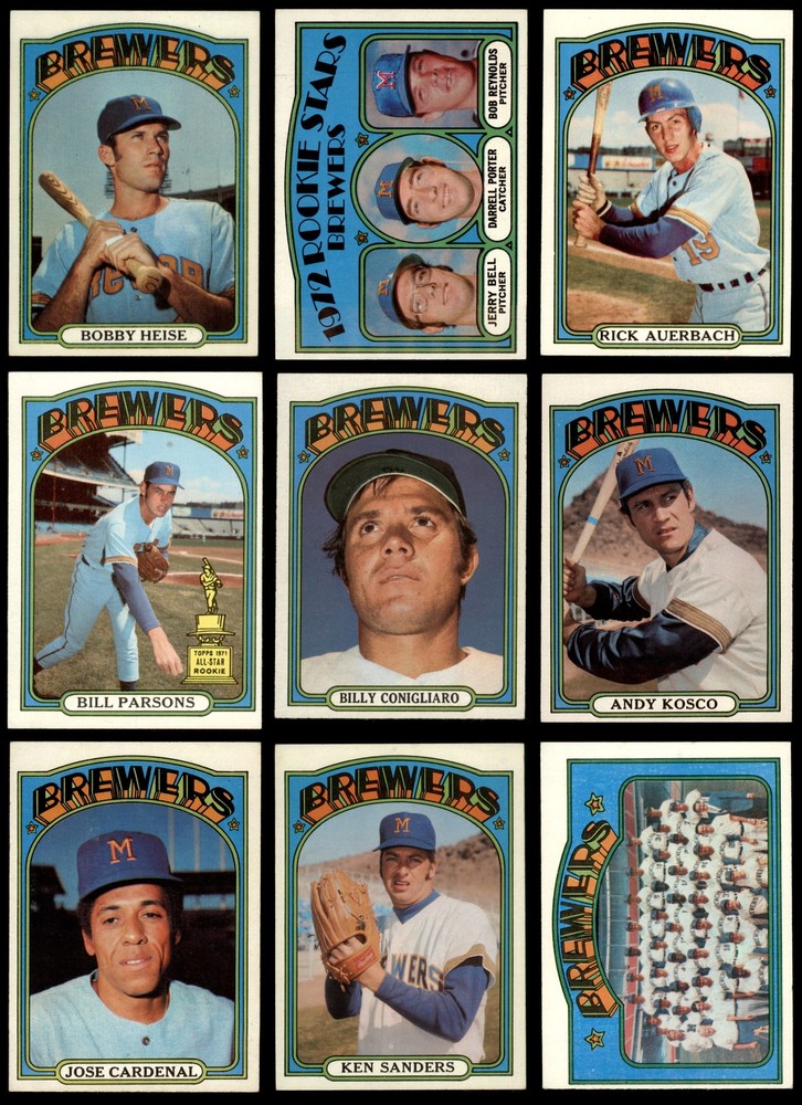 This 1972 Topps Milwaukee Brewers team set is a fantastic piece of baseball history! The cards are in solid condition, mostly EX or better, featuring key players like Jose Cardenal, Darrell Porter, and Jim Lonborg. A must-have for Brewers fans and vintage collectors—great value for a well-preserved set from the early '70s.
