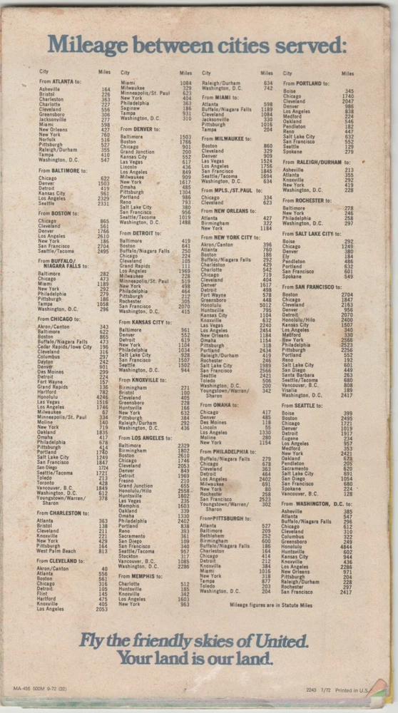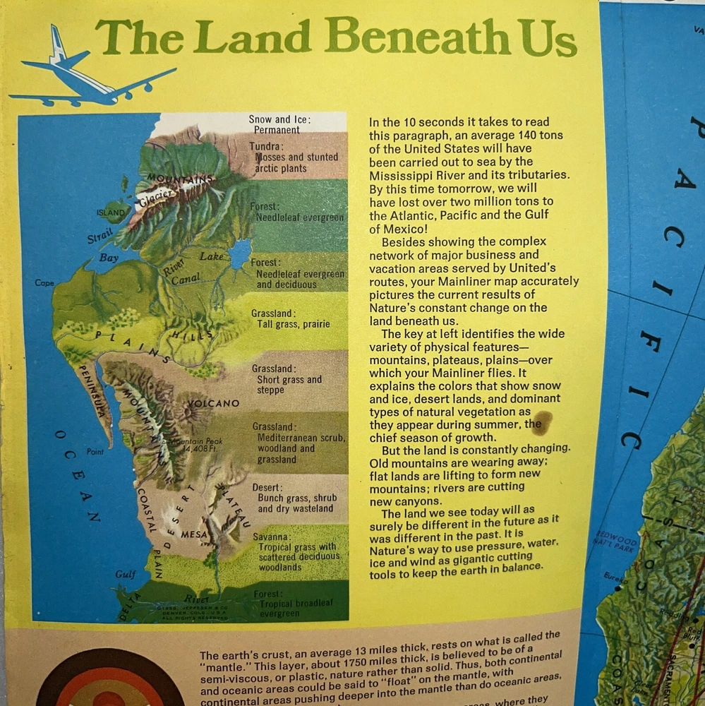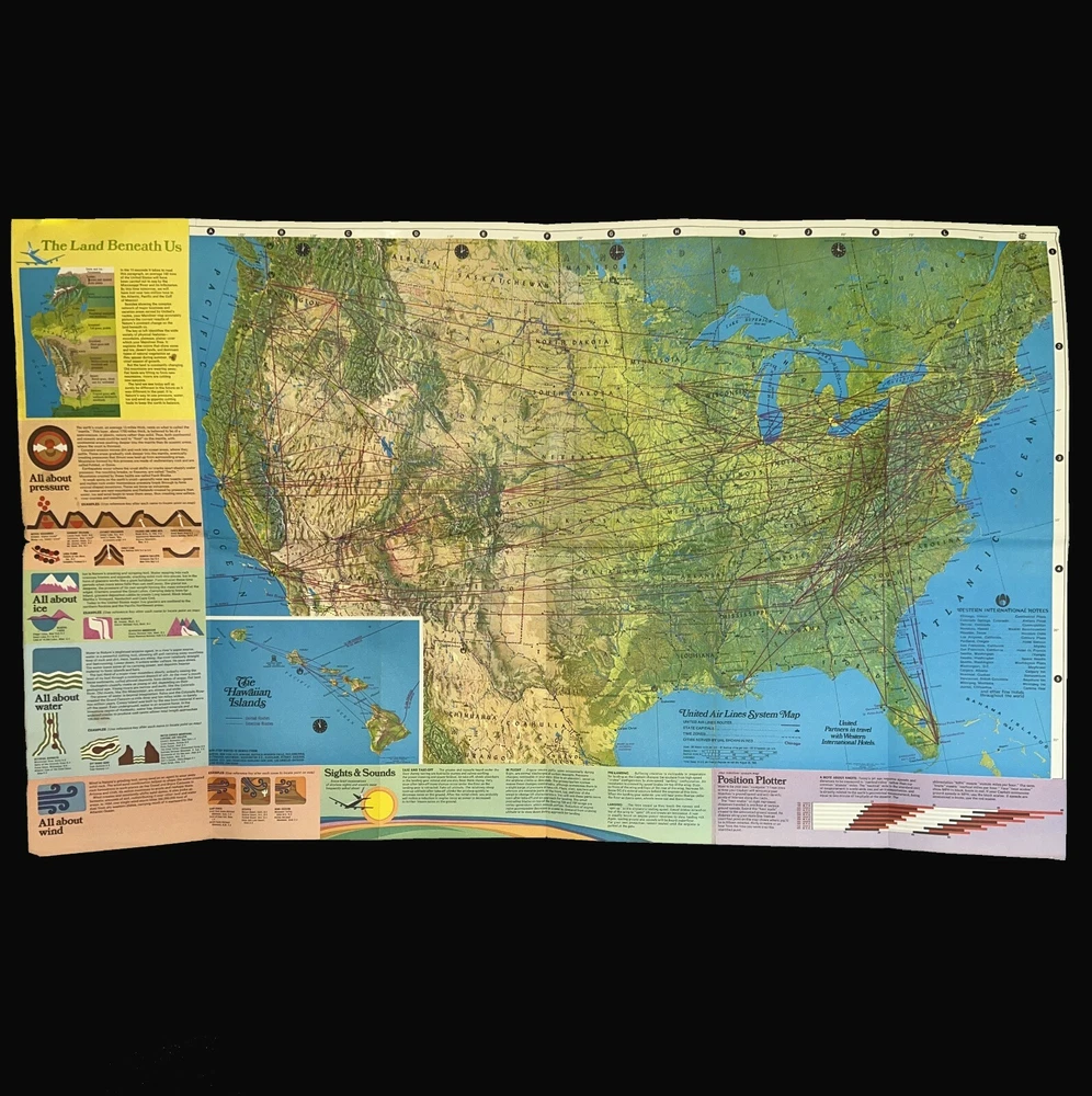 1972 United Air Lines "The Friendly Skies Air Atlas" Full Color US Map w Ski The West Poster on back - 21x34 inches Item: United Air Lines Air Atlas Full Color US Map w Ski West Poster on bk Year: 1972 Location: United States Measurements: Folded: approx. 6"x10.5" Open: approx. 21"x34" Notable Features: Full Color early 70s era Many interesting sections both Poster and Map Check out our other interesting items !