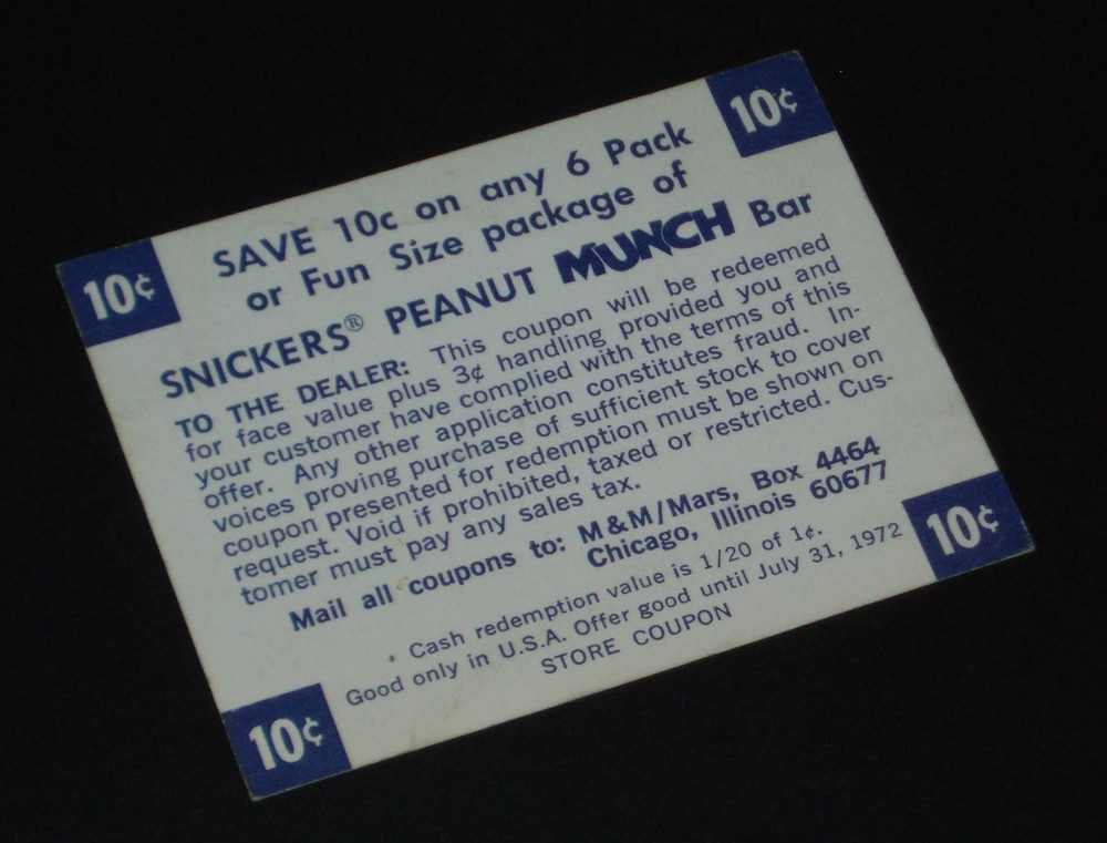 This is a 1972 Snicker Peanut MUNCH Candy bar coupon - $1 shipping