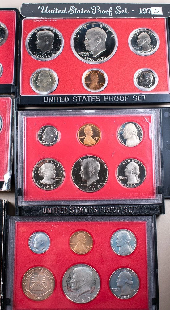 1973 74' 75' 76' 79' 80' 81' 82' U.S. Mint Proof Sets Lot of 8 1973 74' 75' 76' 79' 80' 81' 82' U.S. Mint Proof Sets Lot of 8 A few of these are missing the boxes and some cases are chipped but coins are good See photos to further evaluate condition . About HCC Rare Coins Howard C. Cook, Jr, founded HCC in 1991, and ever since our company has prided itself in being a rare coin management company that offers customers the deep experience our staff of professionals has to offer. HCC Inc. is the only company that offers free written coin and currency appraisals to bank customers and the community at large inside banking offices throughout Indiana, Illinois, Kentucky, Michigan, New York, Ohio, Pennsylvania, and West Virginia. These appraisals are where we purchase many of the great collector coins we have for auction here on eBay. HCC Rare Coins is a member of the American Numismatic Association, Professional Numismatists Guild (Howard C. Cook PNG member), PCGS, NGC and CAC grading services, as well as a member of the Better Business Bureau with an A+ rating and the Toledo Regional Chamber of Commerce. When you do business with HCC you are dealing with professionals. It is our goal to make sure that our customers are satisfied. Providing exceptional customer service is at the top of our list. We hope that you to enjoy doing business with us and come back again and again. Payment Items must be paid within 7 business days of an auction or buy-it-now’s close. eBay payments. We also accept Master Card, Visa, Discover & American Express by phone. Call our office toll free at 1-800-422-4405 to pay by credit card between 9:00 a.m. and 5:00 p.m. (eastern time) Monday through Friday – we are closed on Saturday and Sunday. Send payment to P.O. Box 790, Maumee, OH 43537 Shipping ( Domestic (U.S.) Only) We ship fully insured through USPS. Items less than 16 oz. will ship via First Class Mail and anything 16 oz. or over will ship via Priority Mail. Both methods will provide a tracking number, most high value items with come with signature tracking (over $350). Items are shipped Monday through Friday, within 1 business day from the date the payment clears. Combined Shipping A Combined Shipping Discount is offered for any additional items won within a one week period. Customers will be charged an additional 50¢ per item to the highest shipping price listed (Example - you purchase several small single coins that are at the rate of $4.50 each and a larger/more expensive item at $10.50 - you'll be charged the $10.50 + .50 cents for each additonal item). Please wait for an adjusted invoice BEFORE sending your payment to take advantage of this great offer. Return Policy We want you to be 100% satisfied with your purchase. For that reason, you may return any item for a full refund, less shipping and handling, within 14 days from receipt (P.O. Box 790, Maumee, OH 43537). Please contact us to let us know you will be returning the coin. A 10% restocking fee may be charged for certain returns in which we have incurred a loss, ( unless we have made an error or the item is damaged in the shipping process ). Disagreeing with the grade does not mean that the item doesn't match the description or listing—claiming so is a misuse of eBay returns. Contact Us If you have any questions regarding our policies, your order or anything else, please message us or call us toll free at 1-800-422-4405 Auctions We post new auctions nightly, Sunday through Thursday, and encourage you to continually check our new listings – with all no reserve auctions (posted from 9:00 P.M. to 10:00 P.M. eastern time). We offer combined shipping on additional items (see our shipping policies above). Grading Please note that grading is subjective. Our numismatists have had a lot of training and are very good at what they do. Still you are advised to use your own judgment and purchase the coin based on the provided photos as well as our descriptions. While our grades are the best guidelines we can offer, they are just our opinion. Thank you and Happy Bidding! Powered by SixBit's eCommerce Solution
