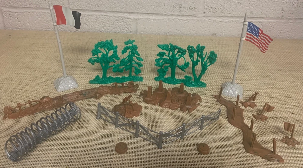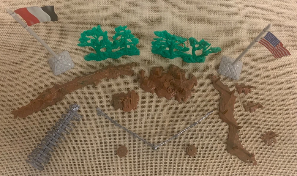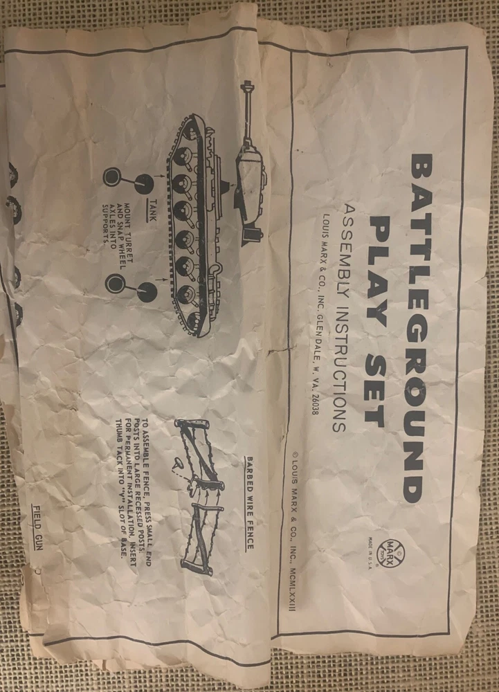The classic MARX set that defies age! This set is in excellent condition, the box however is only in good condition. There are some pieces missing but it is as close to a complete set that I have seen for the price. View the pictures carefully for what is included in this set. The price includes shipping to the continental 48 states only, Canada and others we can determine later.