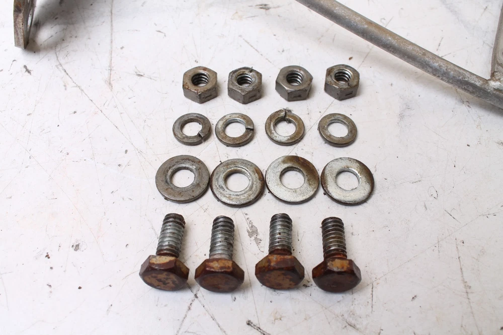 As pictured. Bolts are SAE coarse thread. Don't know if the bolts are original or not. This part is from a 1973 Yamaha LTMX motorcycle. Frame serial# LT2-11897 engine# LT2-01690 Some parts from this LTMX may also fit Yamaha LT3. Cross reference part numbers to confirm. Want to make sure this part fits before you order it? We will help you confirm fitment and compatibility! Send us a message or picture with your V.I.N. number (usually stamped into the frame), and we will look up your machine to make sure you get the correct parts! Why Shop With Us? - Quality Parts: We are very experienced and knowledgeable; we work to provide clear pictures and exact descriptions of items. - No Stock Photos: The part you see is the part you will receive. All parts are in stock and ready to ship. - Fast Shipping: Orders will ship out within 24 hours on business days. (Most items ship the same or next day.) Our packaging is secure and professional. - Open Communication: We answer all inquiries quickly and professionally. We can resolve ANY issue. Please message us with any questions or concerns you may have. - Feedback: We strive for Five-Star Feedback on all transactions. If you have any reason to leave negative feedback we ask that you please contact us first and allow us the opportunity to fix any problem there may be. We assure you that we can resolve ANY issue! ©Cycle Part Express SKU: 192 (1973 Yamaha LTMX Motorcycle)