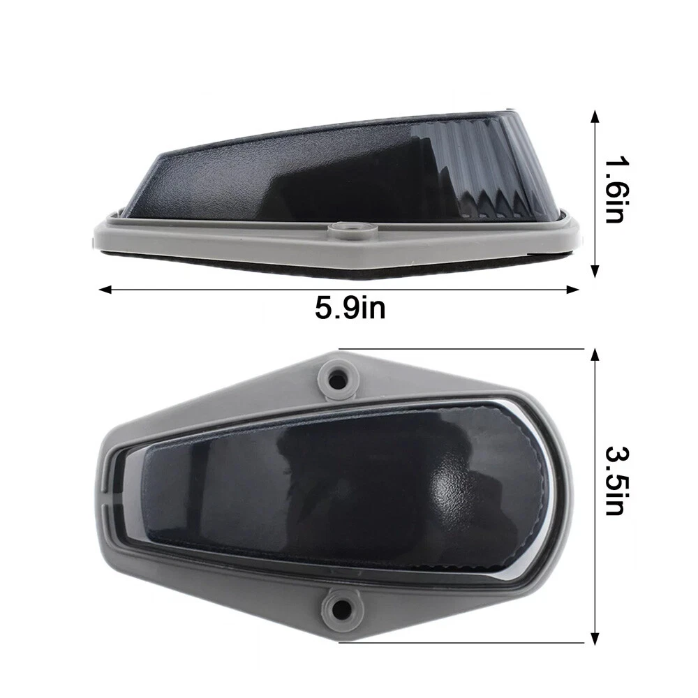 This listing is for one set of 5 pieces front cab roof marker lamps with Smoke lens and 5 pieces Amber LED Bulbs. Simple design for your beautiful and exotic exterior! Application: Roof Cab Marker Clearance Light Covers with Base Housing (Undetachable) Fitment: 1.For 1973 1974 1975 1976 1977 1978 1979 1980 1981 1982 1983 1984 1985 1986 1987 1988 1989 1990 1991 1992 1993 1994 1995 1996 1997 Ford F-150 F-250 F-350 F-Series Super Duty Pickup Trucks 2.Fits on most of 4x4/Off-Road/SUV/Crossover/Jeep/RV/Pickup truck vehicle Part number: For 15442, 8C34-15442-CB, 8C34-15442-AD Attention: 1.Positioning & drilling is needed when installed on other vehicles. 2.You may also need silicone gel or other material to cover the hole. 3.Special care should be taken. DO NOT drill until all positioning is done. Drilling is unnecessary if your vehicle comes with stock roof running lights. 4. Please make sure you can handle all the operation before buying, in case of any hassle. Features: Brand New Cab Roof Running Clearance Marker Light Kit. Comes with high quality Smoke lens and LED lamps. Provide better visibility of your vehicle on the road Manufactured of high quality ABS molded plastic,won't fade from long exposure. Smoke lens to give your car a sporty touch. UV treated and will not fade from prolonged exposure to sunlight and weather elements Enhance visibility during night time, foggy day, heavy rain and snow Direct replacement for OEM factory stock cab marker covers. Perfect fit & No leakage. Neither any cutting, modifying nor wiring is needed. Exactly same as picture ! Comes in 5 pieces ! Can replace most truck/SUV/RV/van's OEM cab roof lights or even be installed as a fresh upgrade. Specification: COVER Brand New Lens Color: Smoke Material: High quality ABS plastic, won't fade from exposure. Size: Same as stock, perfect fit BASE Brand New Size: Same as stock, perfect fit Come with T10 plug base, convenient for modifying & rewiring LED BULBS Light Color: Amber LED Type: 5 Pieces T10 LED Base Type: T10 Quick on/off response and vibration resistant High performance LED, long lifespan, superior illumination & stability Plug and Play Most of LED lights have polarities, please flip them over 180 degree when they do not light up. Note: You may also need silicone gel or other material to cover the hole. Please make sure you can handle all the operation before buying, in case of any hassle. Package Include: 5x Cab marker lights 5x T10 LED bulbs 5x T10 Pre-wired plug socket 10x Screws Other accessories NOT included