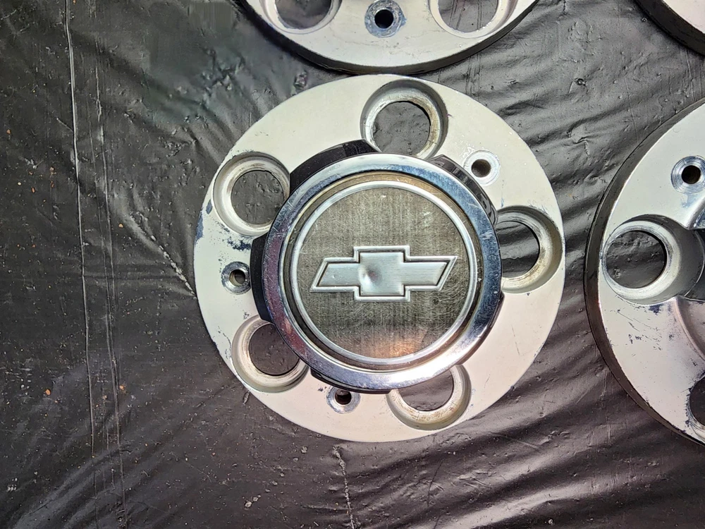 Vintage 40s 50s 60s 70s hub caps. chevy set of 4 Original OEM Factory OE hubcaps wheel covers center caps. in good condition considering their age and being used. These are Used hubcaps off of old classic cars that were driven on the road and used, so please see photos for complete condition as they are not all perfect. Most have some fading, dings, scuffing, mineral staining, etc could use a good polishing to bring em back to full shine, but otherwise in beautiful condition. Check out more of my ebay page as we are going through and listing a ton of classic / vintage hubcaps from the the 20's 30's 40's 50's 60's 70's 80's 90's 00's and up. all different makes and models such as Ford Chevy Chevrolet GM Cadillac GMC camero nova Chevelle Nomad Bel Air Mercury Corvette Mustang Oldsmobile Pontiac Lincoln Dodge Plymouth Buick Chrysler Mopar Fairlane Volkswagen Cheiftain Challanger Charger 1500 4x4 muscle car hot rod rat rod Cars and Trucks 15in 14in 16in and so much more from full sets to sets of 2 and singles, you name it check us out!