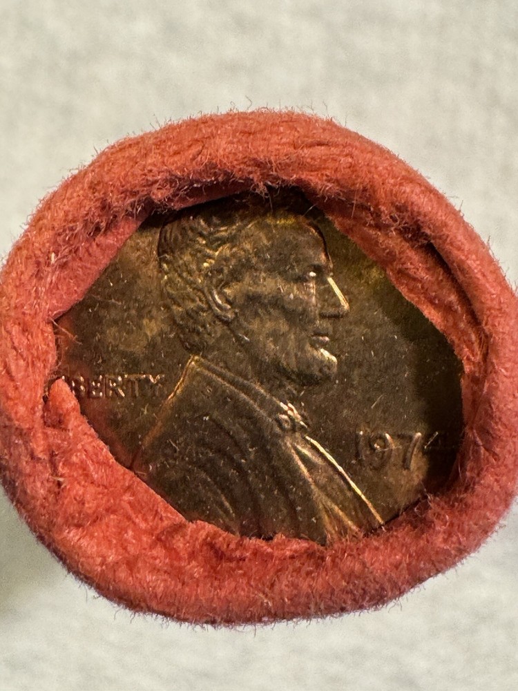 You are viewing a 1974 original bank wrapped uncirculated Lincoln cent roll. High bidder pays shipping handling fee of eight dollars.