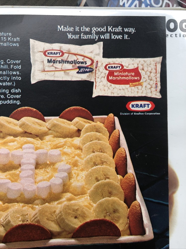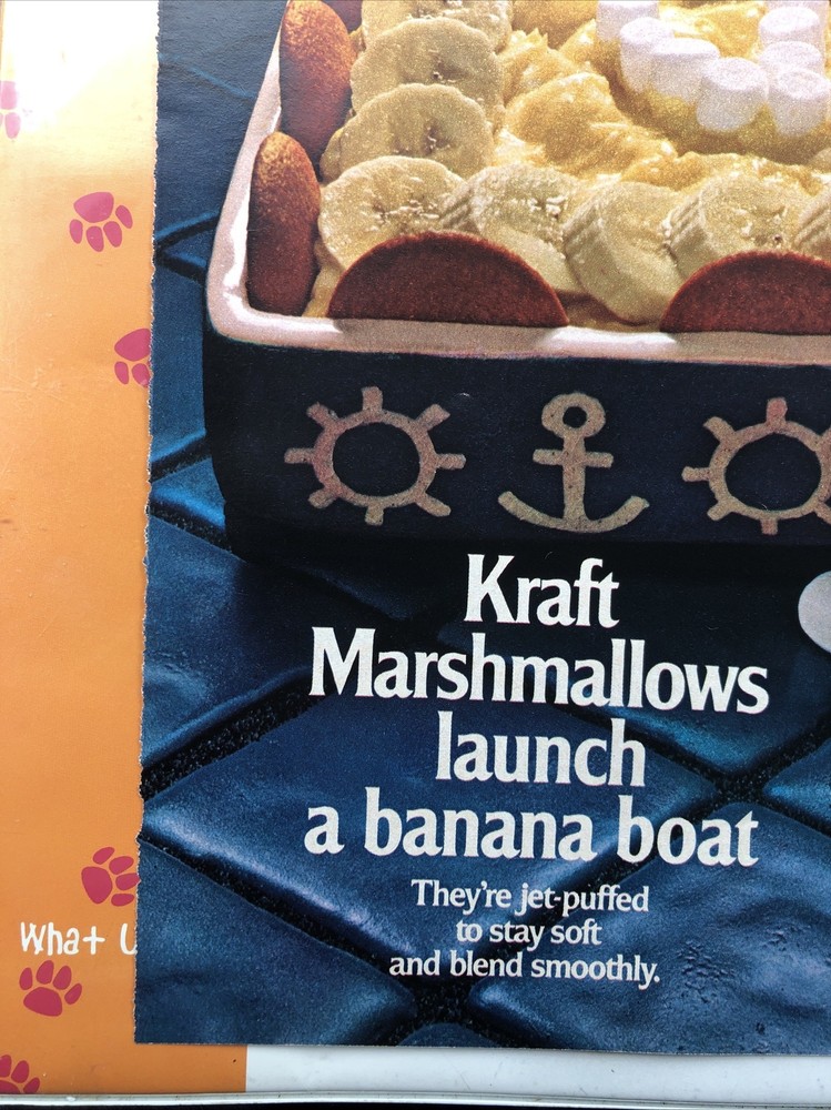 Page Measurements: Approx. 8"x11" Color: Multi-color Theme: Food & Beverage California Prop 65 Warning: Marshmallows, Jet-Puffed Original/Reproduction: Original Date of Creation: 1974 Country/Region of Manufacture: United States Type of Advertising: Magazine Print Ad Brand: Kraft