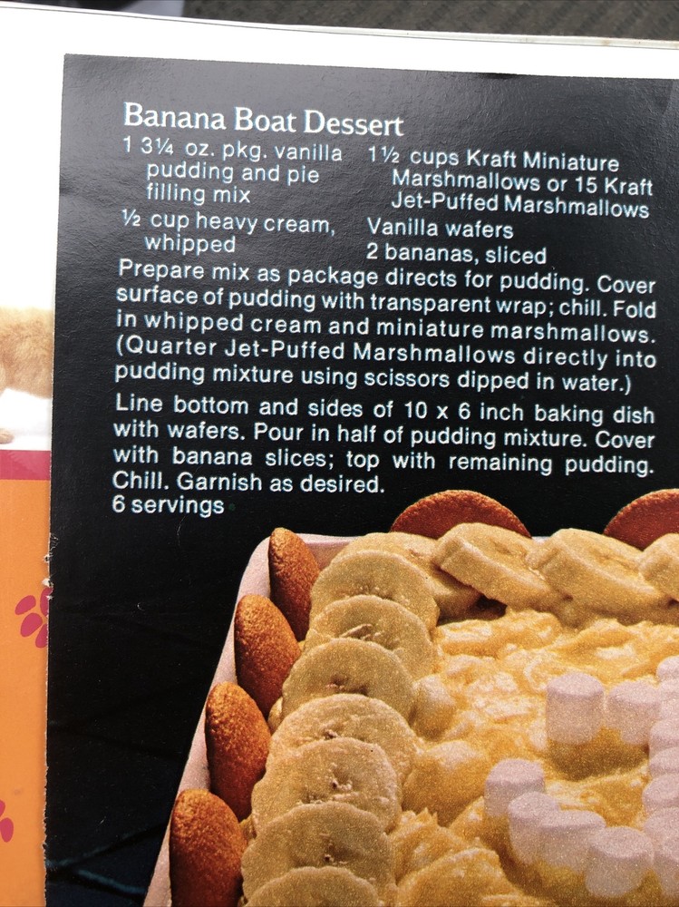 1974 Kraft Jet-Puffed Marshmallows Banana Boat Dessert Recipe Vintage 1970s Print Ad