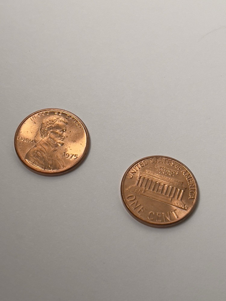 This 1975 Lincoln Memorial penny is in About Uncirculated (AU) condition, pulled from an original roll of BU coins. While it retains strong details and some original luster , it may have minor imperfections or light discoloration from long-term storage—offered at a lower price than true BU examples. Coin Details: Date: 1975 Mint: Philadelphia (no mint mark) Condition: About Uncirculated (AU) Composition: 95% Copper From: Original BU roll Design: Classic Lincoln obverse and Lincoln Memorial reverse Ideal for budget-conscious collectors or set builders looking for a nice example without paying BU premiums.