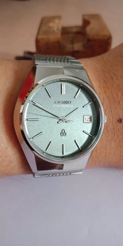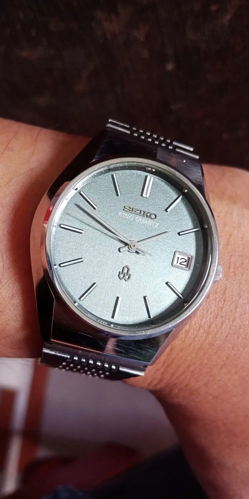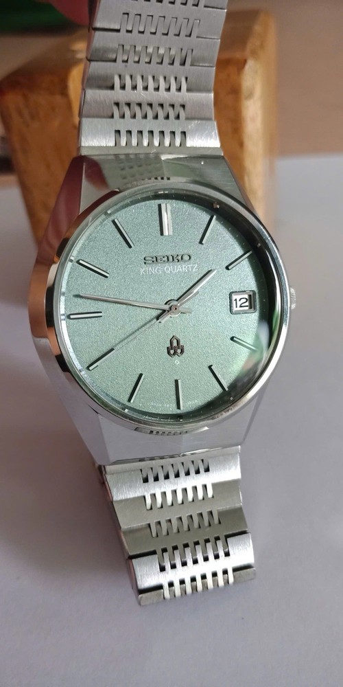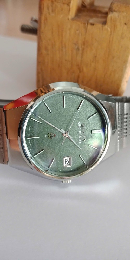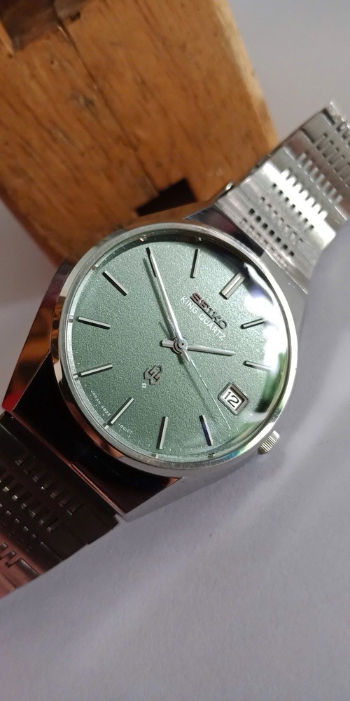 KingSeiko quartz 4822-8010 for Men’s Vintage watch Year no. 1975s-Oct Cal.4822 Movement: Quartz Dial: Original dial (Grey Grain) Case size: 36mm not include crown Length Bracelet is fit up to an 18cm The battery has been changed to New Japan one All in good condition and it runs well although not OH service yet PLEASE SEE ALL PHOTOS BEFORE BUYING Any Questions, Pls DM me. Thanks!