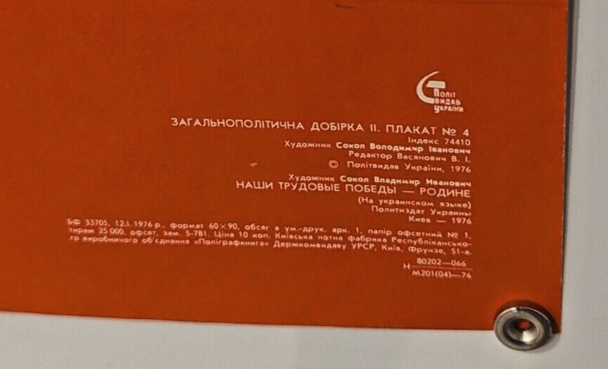 Welcome to Antique Poster Shop The poster is one of the most lively and, at the same time, the most complex areas in graphic design, in art. The Soviet poster is a truly unique phenomenon, and in different years the authors of famous posters were outstanding Soviet artists, leading people of their time. The best artists of their time worked on propaganda posters, famous poets wrote slogans - thus, unique graphic schools were formed. Nowhere in the world did they teach the poster purposefully and systematically, as it was in the USSR. Rare Soviet posters today have to be searched for in different countries of the world. It's a paradox, but what was created in only a few copies and is known only to collectors is sometimes easier to find than what was produced in thousands of copies. Of the millions of campaign posters that have adorned the streets, classrooms, classrooms and hospital corridors for many decades, only a few have survived. Posters of the Soviet era are not only original works of graphic art, antiques and antique graphics, original retro gifts and interior items, but also truly historical documents. SIZE – 36 / 24 INCHES OR 90 / 60 CENTIMETERS SLOGAN : Labor Victories for the Motherland! 1976 THE PAINTER IS Braz Anatoly Leonidovich Braz Anatoly Leonidovich (born in 1929) is a Moscow poster artist, illustrator, and writer. Member of the Union of Artists of the USSR. Studied at the Moscow M.I. Kalinin School of Industrial Art, then graduated from the Higher Pedagogical Department at the same school. Since the mid-1960s, the artist has been creating posters on occupational safety. He created a series of anti-alcohol posters, “For a Healthy Lifestyle.” He worked mainly as a graphic artist in Moscow publishing houses. Anatoly Braz is the author of famous agitational social and political posters: “Your beauty is in your work,” “Let everyone remember that a summer day feeds the year,” “Get rid of the parasite, the bureaucrat from the state apparatus,” “Make sure that the master doesn’t sneak into your construction site to get drunk,” “Be tempered like steel!” (1972), "On the Lenin Course" (1978, together with V.G. Pervov), "No to Neutron Madness!" (1981), "Do Not Allow It!" (1982). He gained worldwide fame thanks to his political posters dedicated to the struggle for peace and against nuclear weapons. Anatoly Braz's political posters were exhibited in Moscow, Warsaw, Bucharest, Havana, Paris, Stockholm and many other countries, and were published in the magazine "Agitator", the newspapers "Izvestia", and "Soviet Culture". Braz composed the slogans for his posters himself. Much later, in the post-perestroika period, Braz continued to work on creating posters, although they were no longer relevant. Braz's posters received well-deserved recognition from viewers and colleagues in the industry. "Dear colleague! I admire your work of exceptional posters and your, often full of fantasy, embodiment. "Thank you for giving me the opportunity to see them," wrote the great cartoonist Herluf Bidstrup during his visit to the master's workshop. A.L. Braz's posters are in the collection of the Russian State Library, private Russian and foreign collections. . Attention important information ////// A ttention important information //////////////////////////////////////////////////////////////////////////////////////////////////////////////////////////////////////////// Visit my store : https://www.ebay.com/str/originalfilm312/Poster/_i.html?store_cat=43231993011 In my store, all posters are very conveniently arranged by category. I combining shipping ( After selecting all posters. Write to me to send you an invoice including combined shipping . ) Will be shipped rolled in professional packaging and tracked delivery Some posters are undergoing professional restoration. But not all. If this is important for you, ask a question, this poster has been restored or not. Thank you //////////////////////////////////////////////////////////////////////////////////////////////////////////////////////////////////////////// Shipping Policy Item will be shipped immediately on the same or next business day of receiving the payment Shipping WorldWide through UKRAINE Posts Tracking number will be provided I am not responsible for any wrong or undeliverable address. Delivery to European countries usually takes about 10-17 days. Delivery to USA, CANADA , North America and other countries takes about 18-30 days. The delivery time depends on the destination, holidays, customs clearance factor and other factors.