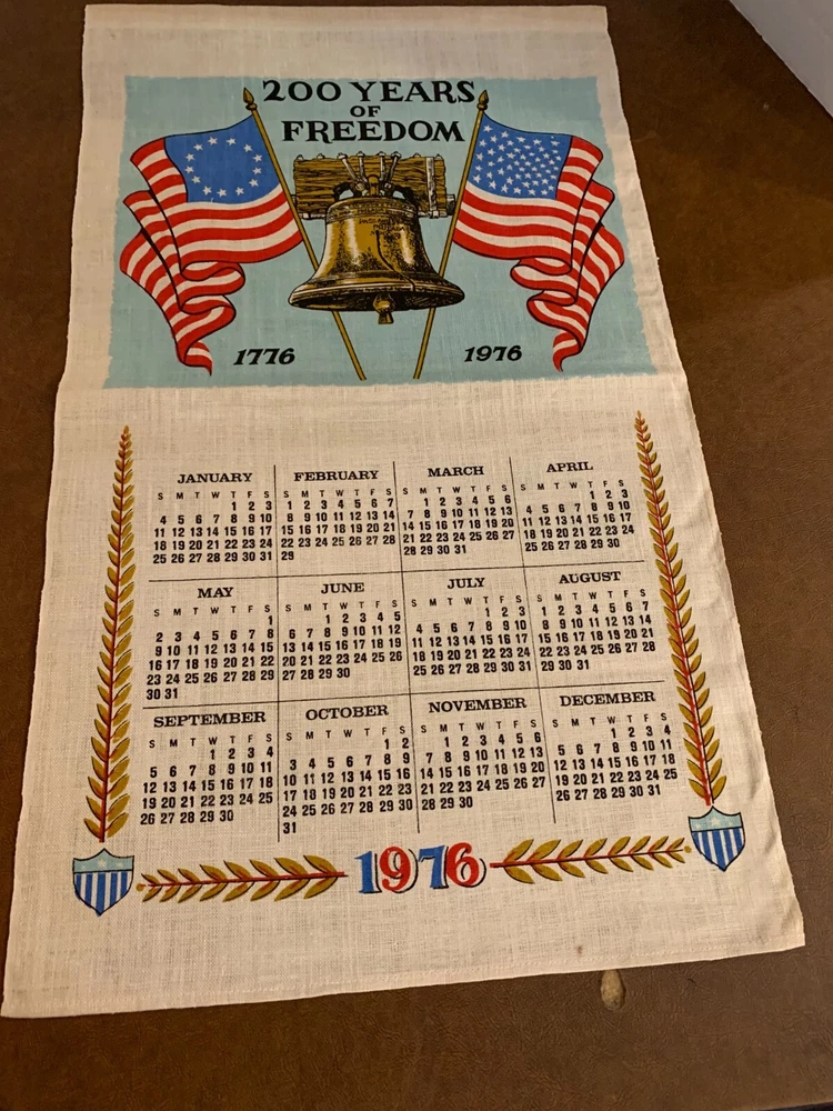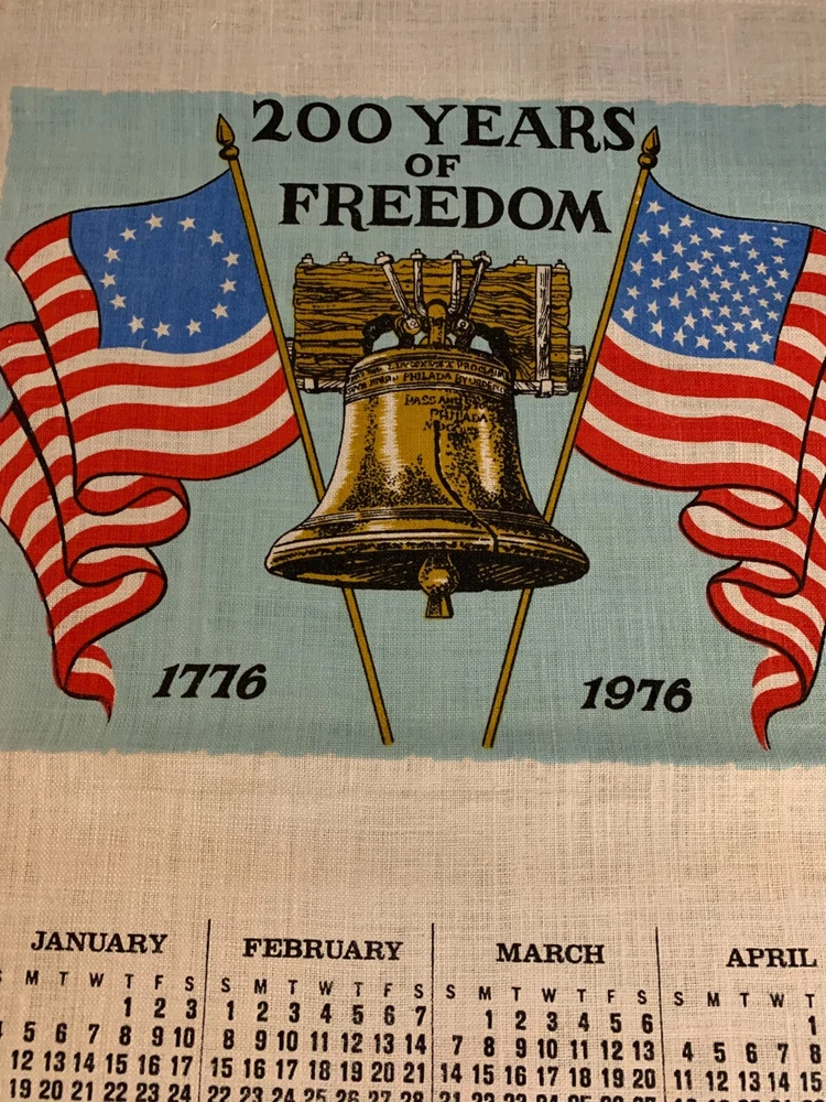 1976 Linen Calendar Tea Towel 200 Years Freedom Liberty Bell USA Flag Vintage