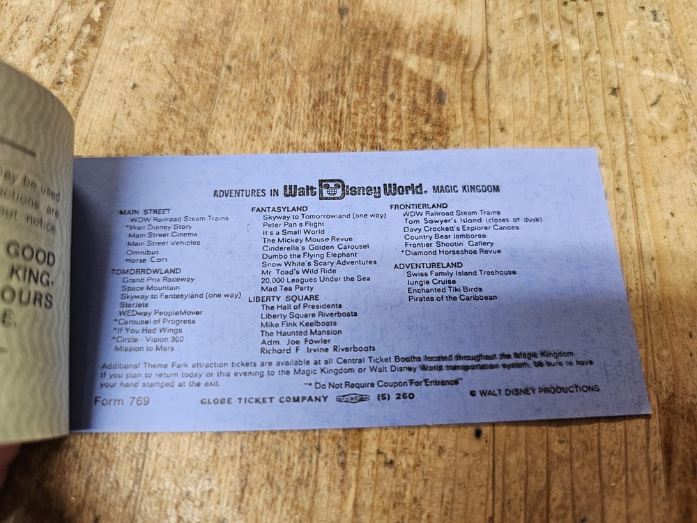 $ 42.241979 Walt Disney World Adult ticket coupon book booklet original Disney 1970's