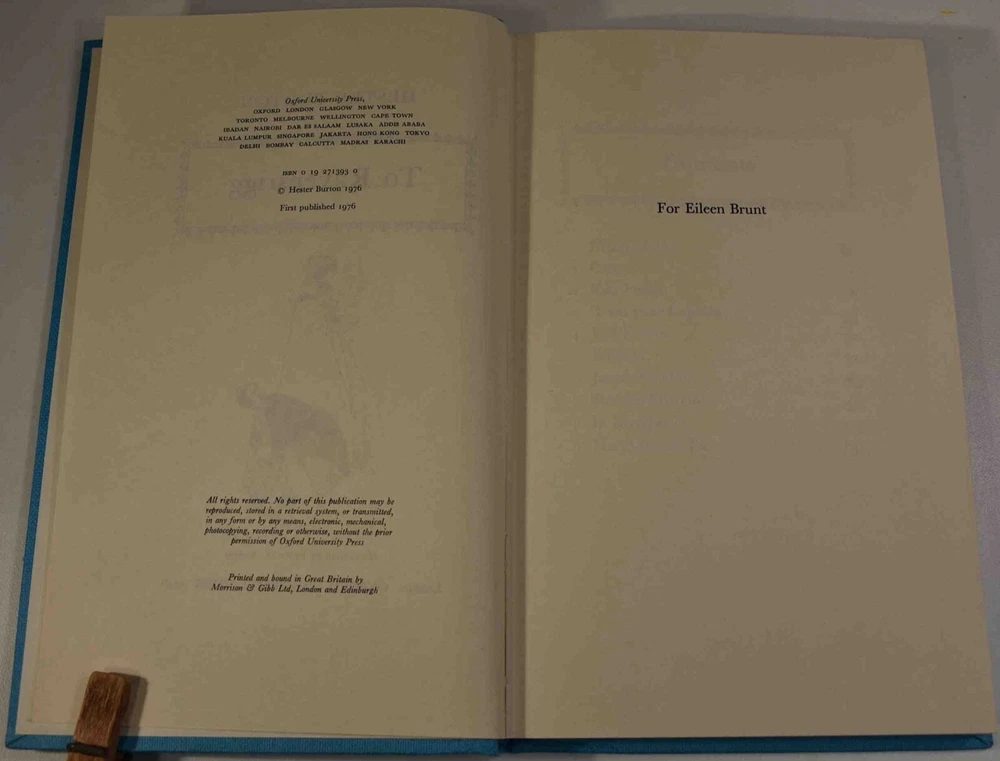 TO RAVENSRIGG Written by Hester Burton. Published by Oxford University Press, London. Copyright 1976; “First published 1976” is stated on the copyright page with no other printing dates noted—a first edition. From Wikipedia: Hester Burton (6 December 1913 – 17 September 2000) was an English writer, mainly of historical fiction for children and young adults. She received the Carnegie Medal for her 1963 novel Time of Trial, which like many of her books was illustrated by Victor Ambrus. DESCRIPTION: 148 pages 8 3/4 x 5 5/8 inches first edition hardcover with dustjacket CONDITION: This hard-cover book is in very good condition with a near fine dust jacket. The blue cloth hardcover is clean and shows only slight wear at the corners and spine ends. There is a name printed at the top of the front pastedown. The front endpaper has been torn out. The interior is otherwise excellent with no marks, underlining, tears creases, foxing or odor. The hinges and binding are excellent with no loose or missing pages. The dust jacket is complete with price intact on the front flap, There is slight rubbing of the edges. There is a bit if a crease along the front edge near the spine, but I think this is a production “flaw” and not caused by any use. This dust jacket will come protected in a new Brodart mylar dust jacket protector. From the dust jacket description: ’Ravensrigg? Where in heaven’s name was Ravensrigg, she asked herself, almost in panic. And what awaited her there —even if she could find it? What was to happen to her—with no parents; no friends; no money; with nothing but the name Ravensrigg to attach her to the world?’ A sudden and tragic disaster has separated Emma Hesket from her confined life in her aunt’s home, and the very foundations of her existence seem to have been destroyed. Emmie has always possessed a strong will and the capacity for courageous action; the strange days of confusion that follow are to test these qualities to their utmost. Hester Burton’s new novel is set in the late eighteenth century, and its story of Emmie’s search for identity and love is unfolded against a background of an England whose conscience is torn by the iniquities of the slave-trade. BECAUSE MEDIA RATE SHIPPING IS FREE ON THE BOOKS I SELL, COMBINE THIS WITH OTHER ITEMS FROM MY EBAY STORE. I AM AN EXPERIENCED EBAY SELLER (23+ YEARS) AND SHIPPER WITH 100% (always!--since 1997!) FEEDBACK RATING. ALL ITEMS ARE CAREFULLY AND SECURELY PACKED TO REDUCE OR ELIMINATE DANGER OF CRUSHING AND OR WATER/MOISTURE DAMAGE. ALL BOOKS ARE SHIPPED IN STURDY BOXES WITH TRACKING AND DELIVERY CONFIRMATION INCLUDED. I PERSONALLY GUARANTEE ALL OF THE BOOKS, AUTOGRAPHS AND SIGNATURES ON BOOKS I SELL.