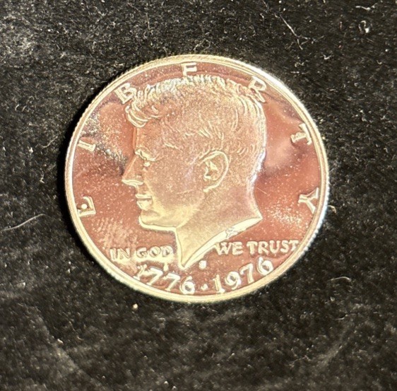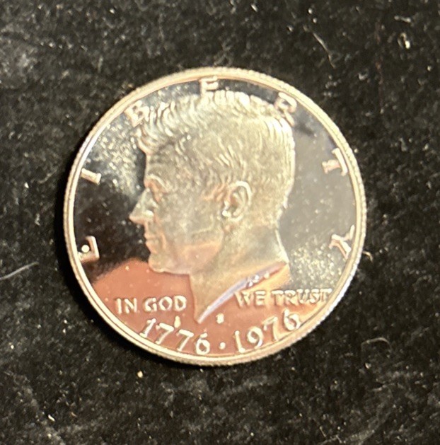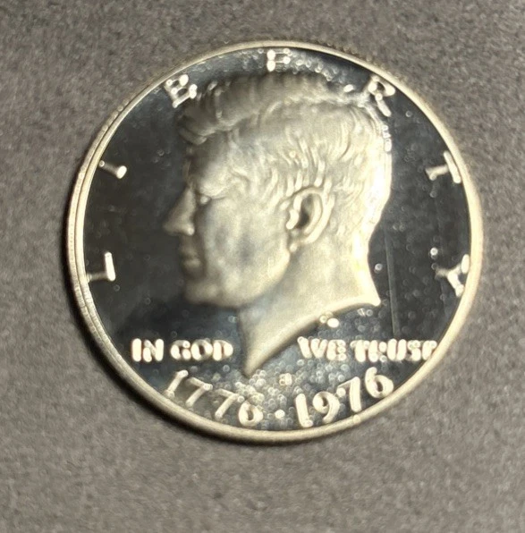 UNGRADED, UNCERTIFIED BUT UNCIRCULATED 1976 S KENNEDY PROOF STRIKE BICENTENNIAL HALF DOLLAR PROOF 40% SILVER 50C US COIN A genuine 1976 S Kennedy Bicentennial Silver Clad Half Dollar Coin, in Choice Proof Condition. Contains 40% Silver . This Bicentennial half dollar honors the 200th anniversary of America’s founding with Seth Huntington’s reverse featuring Independence Hall and the inscription 200 YEARS OF FREEDOM. You’re gonna want this Coin!!! Thanks for looking, Dana