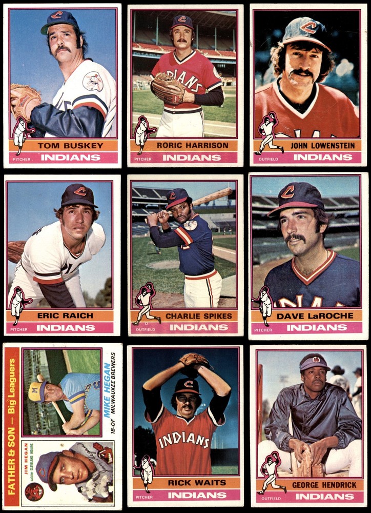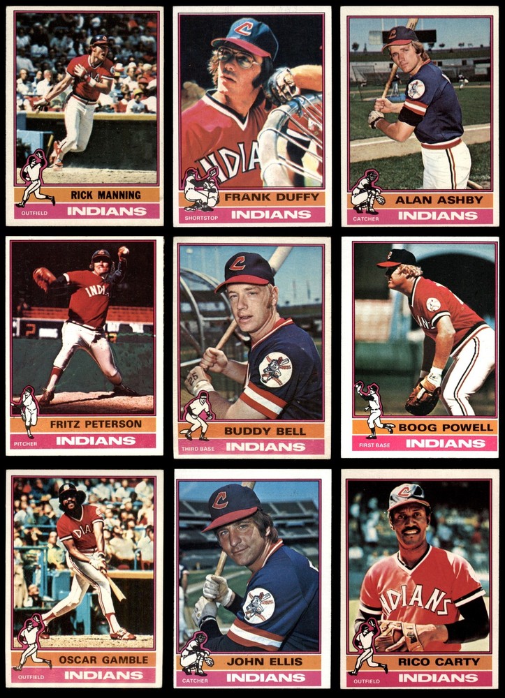 This set contains the following cards 1976 Topps #21 Dave LaRoche 3 - VG Front Back 1976 Topps #45 Boog Powell 3 - VG Front Back 1976 Topps #66 - Gus Bell / Buddy Bell Father & Son 5 - EX Front Back 1976 Topps #69 - Jim Hegan / Mike Hegan Father & Son 2 - GOOD Front Back 1976 Topps #74 Oscar Gamble 4 - VG/EX Front Back 1976 Topps #98 Dennis Eckersley 3 - VG Front Back 1976 Topps #132 Don Hood 3 - VG Front Back 1976 Topps #156 Rico Carty 4 - VG/EX Front Back 1976 Topps #178 Tom Buskey 4 - VG/EX Front Back 1976 Topps #202 - Jim Palmer / Catfish Hunter / Dennis Eckersley AL ERA Leaders 3 - VG Front Back 1976 Topps #204 - Frank Tanana / Bert Blyleven / Gaylord Perry AL Strikeout Leaders 4 - VG/EX Front Back 1976 Topps #209 Alan Ashby 4 - VG/EX Front Back 1976 Topps #232 Frank Duffy 4 - VG/EX Front Back 1976 Topps #255 Fritz Peterson 4 - VG/EX Front Back 1976 Topps #275 Rick Manning 4 - VG/EX Front Back 1976 Topps Traded #296 T Pat Dobson 3 - VG Front Back 1976 Topps #301 Jackie Brown 2 - GOOD Front Back 1976 Topps #324 Jim Bibby 4 - VG/EX Front Back 1976 Topps #358 Buddy Bell 3 - VG Front Back 1976 Topps #383 John Ellis 3 - VG Front Back 1976 Topps #408 Charlie Spikes 3 - VG Front Back 1976 Topps #433 Rick Waits 4 - VG/EX Front Back 1976 Topps #457 Ed Crosby 3 - VG Front Back 1976 Topps #477 - Frank Robinson Indians Team Checklist 3 - VG Front Back 1976 Topps #484 Eric Raich 4 - VG/EX Front Back 1976 Topps #508 Duane Kuiper 4 - VG/EX Front Back 1976 Topps #547 Roric Harrison 4 - VG/EX Front Back 1976 Topps Traded #554 T Ray Fosse 3 - VG Front Back 1976 Topps #570 George Hendrick 3 - VG Front Back 1976 Topps #618 Jack Brohamer 3 - VG Front Back 1976 Topps #646 John Lowenstein 4 - VG/EX Front Back This 1976 Topps Cleveland Indians Team Set Team Set contains Indians baseball cards and makes a great gift for any fan. ?With an inventory of over 15,000 team sets, Dean's Cards has Team Sets & Near Team Sets for just about every team, in multiple conditions, for all sports, for most major sets issued between 1909 and 1979. There is also a 1976 Team Set available from SSPC. Set breakdown by grade: Number of Cards in Set 31 Average Grade - Weighted by Value 3.31 - VG+ Average Grade - Unweighted 3.45 - VG+ Grade Breakdown 5 - EX 1 4 - VG/EX 14 3 - VG 14 2 - GOOD 2 Dean's Cards offers a 100% Money Back Satisfaction Guarantee on all purchases. Just contact us within 10 days of the purchase date and we will refund your money or, when possible, replace the cards. 1976 Topps Cleveland Indians Team Set 3.5 - VG+ 6908787 If the scan in the listing says ACTUAL IMAGE, you will receive the card pictured. For cards issued after 1983, we will often use representative images and you will not receive the exact card pictured. Shipping Policy You only pay shipping on the first item. If you order multiple items on the same order, you will only be charged once for shipping. We do not combine shipping on multiple orders. To avoid multiple shipping charges we recommend using eBay's "Add to Cart" feature to check out multiple items in one transaction, or please request and allow for us to send an invoice to reflect the combined shipping charges. Canadian customers - We send all of our Canadian/International packages with tracking and cannot make any exceptions to this policy. Negotiating Prices All prices are final and we do not negotiate. This policy is to ensure that everyone knows that they are getting our best possible price. So please do not ask us to negotiate on price. Return Policy Dean's Cards has a 100% Money Back Satisfaction Guarantee on all purchases, as long as the product is returned within 30 days of receiving the product. Card Grading Each card is first reviewed by a member of our team, in order to detect any flaws that may not be visible on a scan, such as wrinkles, creases, print spots, or light stains. The vast majority of our vintage cards are professionally graded by the Dean's Cards Grading Software and include a 100% satisfaction guarantee. Our grading is on par with PSA standards when it comes to corners, centering and flaws - and tends to grade a bit tougher than PSA, on cards with a tilted image or rough edges. This grading software was developed to provide far better grading and consistency than can be achieved using the human eye. Determining the card's grade The sharpness of the corners and the degree to which a card was cut off-center determines the maximum possible grade that the card can receive. The card's grade is further reduced by any flaws or blemishes that it may have. Each card is evaluated on the following characteristics and assigned a score. Corners - Each corner of a card is individually analyzed, and then assigned a score on how square, sharp, and flawless it appears. Centering - The borders are measured, at multiple points along the edge, to determine the horizontal and vertical centering and tilt. Defects - The card is examined for imperfections, such as: size, print flaws, dings, stains, creases, or other wear which could lower its grade. Bonus for Perfect Centering - A vintage card, with near perfect centering, is given a one-half grade bonus. So when you buy one of our cards with a half-grade (e.g. 3.5 or 6.5) it will appear perfectly centered, both vertically and horizontally. Grading Criteria Worst Corner - A card can grade only as high as the worst corner will allow. Average Corner Tilt - The difference in width of a card border near the top, compared to the bottom. OCT - The sum of how far a card is Off-Center, plus its Tilt. Minimum Centering Requirements Eye Appeal - The combination of a card's centering, corners and tilt. Well-Centered - Cards that appear perfectly centered receive a bonus of one-half grade. Flaws, defects and other imperfections - can lower a card's grade. Card Backs - the above criteria is also considered, for the back of the cards, but does not inflict as severe of a penalty to its grade. Packaging Once scanned, the cards are placed in "soft" slee