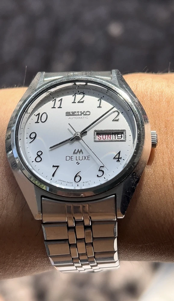 Seiko LM Deluxe 5626-8140, Hi Beat 28800bph: Movement: Automatic Case size 36mm not include crown Dial: Original dial Bracelet is Original that has LM logo. It runs well and not OH service yet . PLEASE SEE ALL PHOTOS BEFORE BUYING. Any Questions pls DM me. Thanks