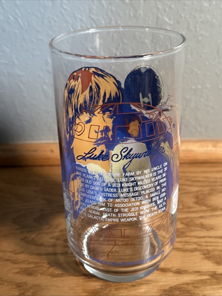 The product is a vintage 1977 Burger King character glass featuring Luke Skywalker from the movie Star Wars IV. This collectible item from the United States represents the iconic science fiction franchise, making it a must-have for any Star Wars enthusiast. The glass showcases a classic design inspired by the beloved character, adding a nostalgic touch to any collection of Star Wars memorabilia.