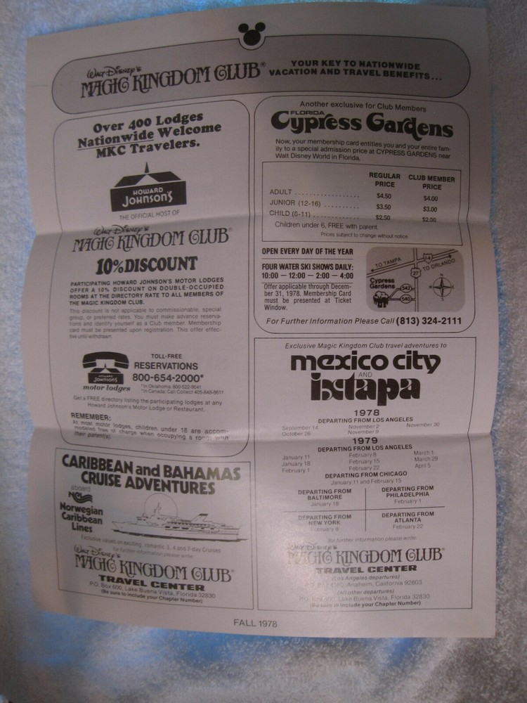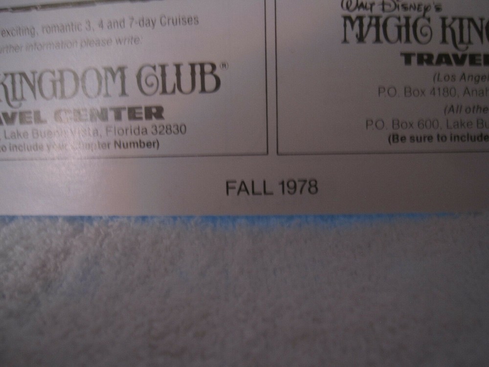Here is a wonderful 1978 Disneyland Walt Disney World information folder for your Disney collection! It is in good condition with creases, edge wear, folds, indentations, surface wear and some marks. It still has bright colors. Item is sold “as is”. I try to describe my items as accurately as possible. Please email me with any questions before bidding. NO INTERNATIONAL BIDDERS PLEASE Winning bidder to pay by PayPal within 3 days after the end of the auction. Buyer must have a confirmed PayPal shipping address. Shipment will take place after receipt of cleared payment. I will package your item carefully for shipment. THANK YOU FOR LOOKING! PLEASE LOOK FOR MY OTHER DISNEYLAND AUCTIONS! I AM ALWAYS HAPPY TO COMBINE ITEMS FOR SHIPMENT TO SAVE YOU MONEY