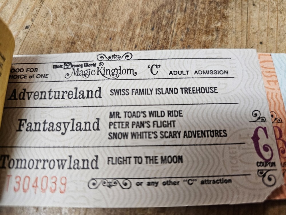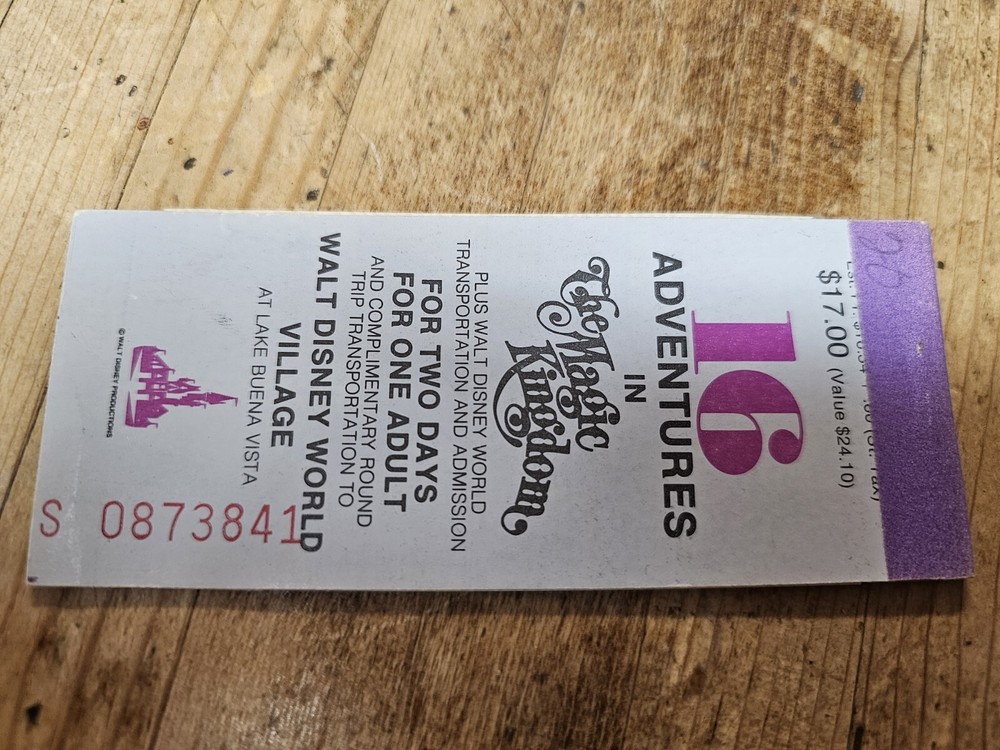 Here is a wonderful 1978 Disney World Adult ticket book for your Disney collection! It is a 16 Adventure ticket book with 5 tickets - 1 E, 1 D, 1 C, 1 B and 1 A ticket. The E, D, B and A tickets with the same serial number are attached to the ticket book. The C ticket with a different serial number is loose in the ticket book. The loose, added C ticket is an Adult ticket from the same era. The ticket book is in good condition with creases, surface wear, edge wear, edge tears, stains and some marks. The C ticket has a piece missing from the lower right corner. Item is sold “as is”. I try to describe my items as accurately as possible. Please email me with any questions before bidding. NO INTERNATIONAL BIDDERS PLEASE Winning bidder to pay by PayPal within 3 days after the end of the auction. Buyer must have a confirmed PayPal shipping address. Shipment will take place after receipt of cleared payment. I will package your item carefully for shipment. THANK YOU FOR LOOKING! PLEASE LOOK FOR MY OTHER DISNEYLAND AUCTIONS! I AM ALWAYS HAPPY TO COMBINE ITEMS FOR SHIPMENT TO SAVE YOU MONEY