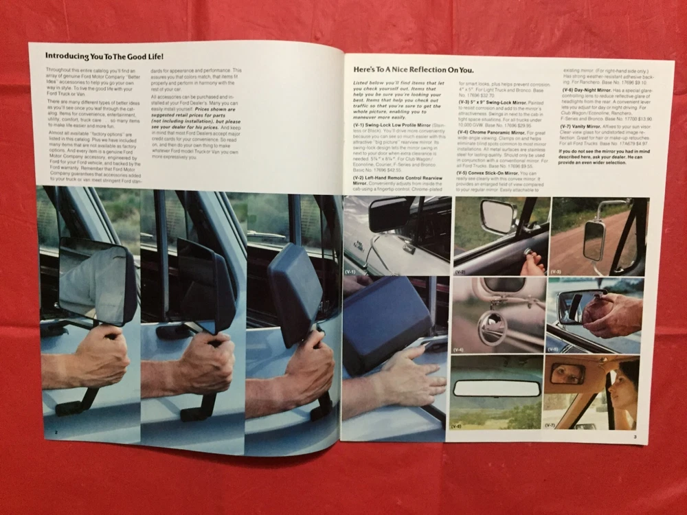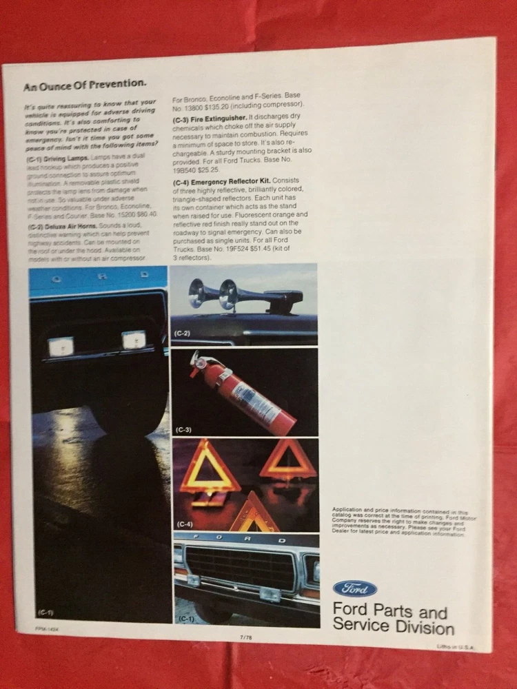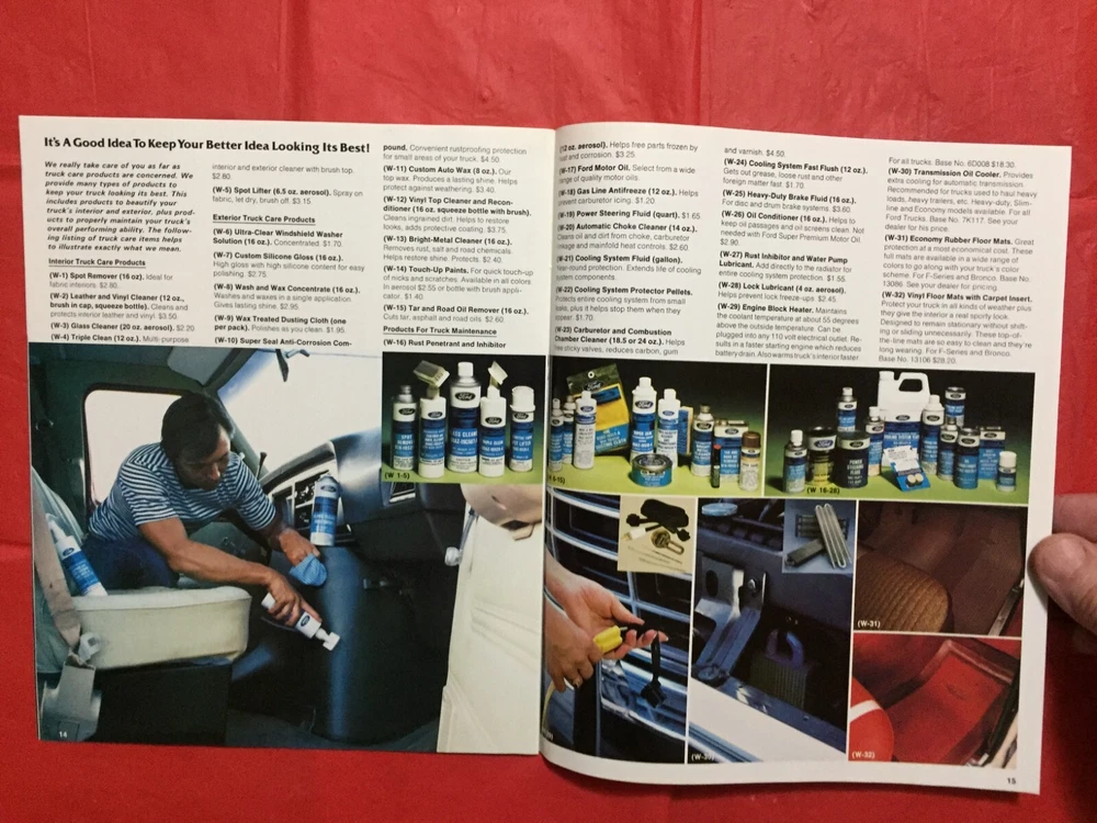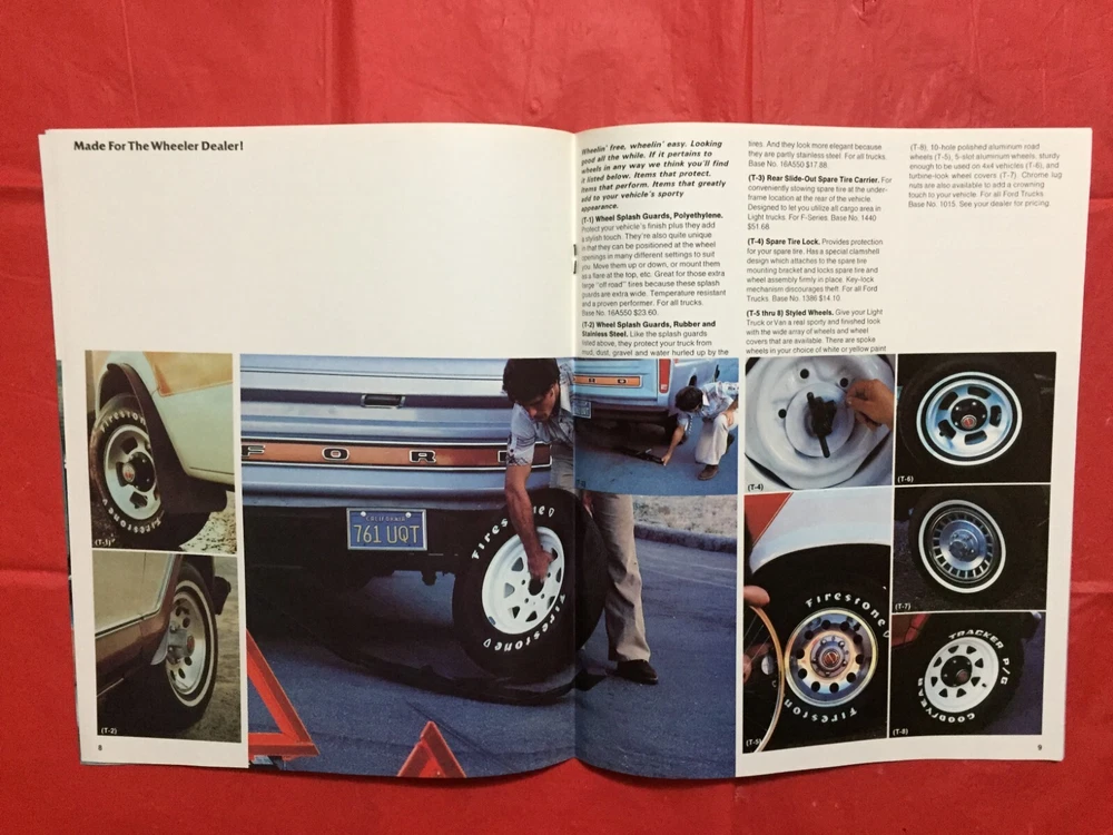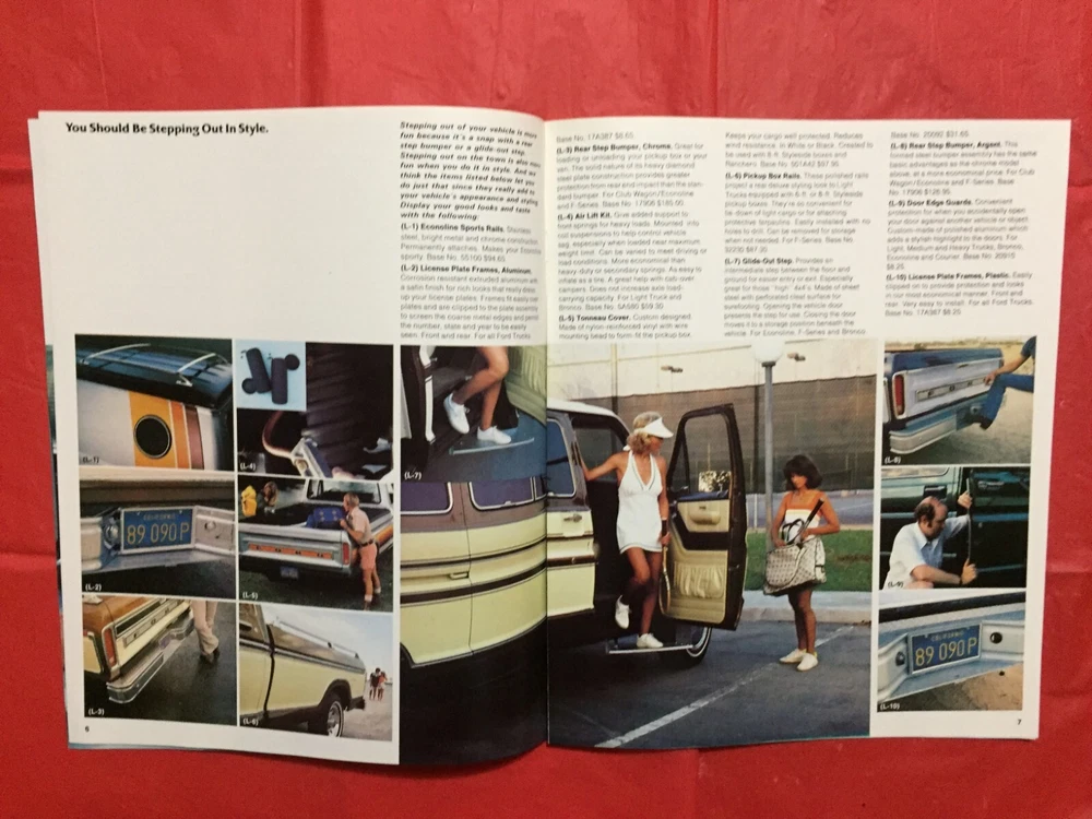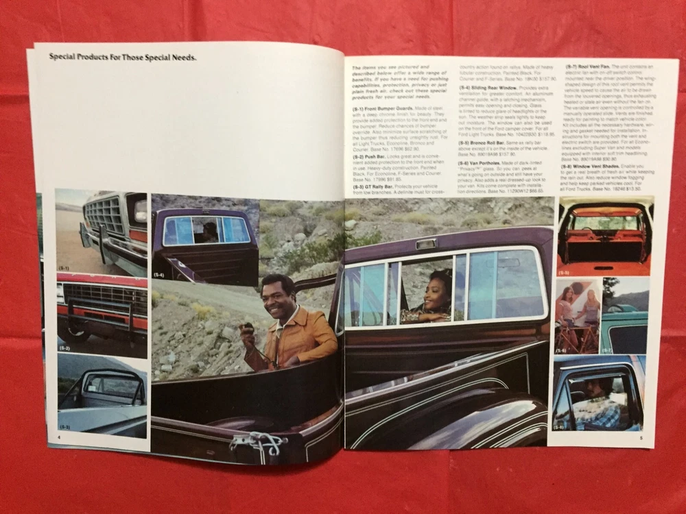 ITEM:::: This Listing is for an original 1979 FORD "TRUCK ACCESSORIES" Truck Dealer Sales Brochure... .... DIMENSIONS:::: About 10 3/4 by 9 inches and there are 16 pages with covers ...... CONDITION:::: The Condition is generally mostly VG..... Please refer to the pictures & e-mail for details). ......... ABREVIATIONS:::: E=Excellent with no issues..... VG = Very Good with very lite issues..... G/VG = Good to Very Good with lite issues..... G + = Good+ with lite to moderate issues..... G = Good with moderate issues..... G - = Good- with moderate+ issues..... F/G = Fair to Good with quite a few issues..... F = Fair with many issues..... P = Poor with lots of issues..... Please let the pictures help you decide condition because they are an integral part of the description! Please e-mail with questions...... I will combine shipping & you will only pay $3.98 for shipping no matter how many items you accumulate! You can take up to 30 days to accumulate Items for combined shipping. Please drop me a note after your 1st win letting me know that you intend to wait to pay so that you can take advantage of combined shipping...... I will ship your Package to the address that you have registered on EBAY---Ergo, I will ship to the address that is on the shipping label when I print it from EBAY---Please do not ask me to ship to any other address---I will not do it! My goal is 100% satisfaction! I will refund 100% of your costs if you are not satisfied! Thanks for visiting!
