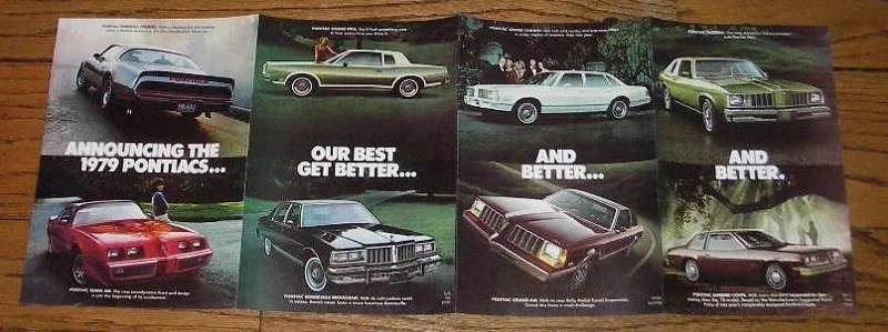Item ID: Multi4 This listing is for a vintage paper advertisement. This is a 1979 8-page (4-pages front/back) ad for Pontiac cars! I believe it features the entire car lineup for that year, including Grand Prix, Firebird, Trans Am, Formula Firebird, Bonneville, Grand Am, Sunbird coupe, Grand Prix, Bonneville Brougham, Phoenix, Grand LeMans and more! The size of the ad when all pages are opened is approximately 11x29 inches. The caption for this ad is 'Announcing the 1979 Pontiacs... Our best get better...' The ad is in good overall condition, with some light wear. This vintage ad would look great framed and displayed! Add it to your collection today!