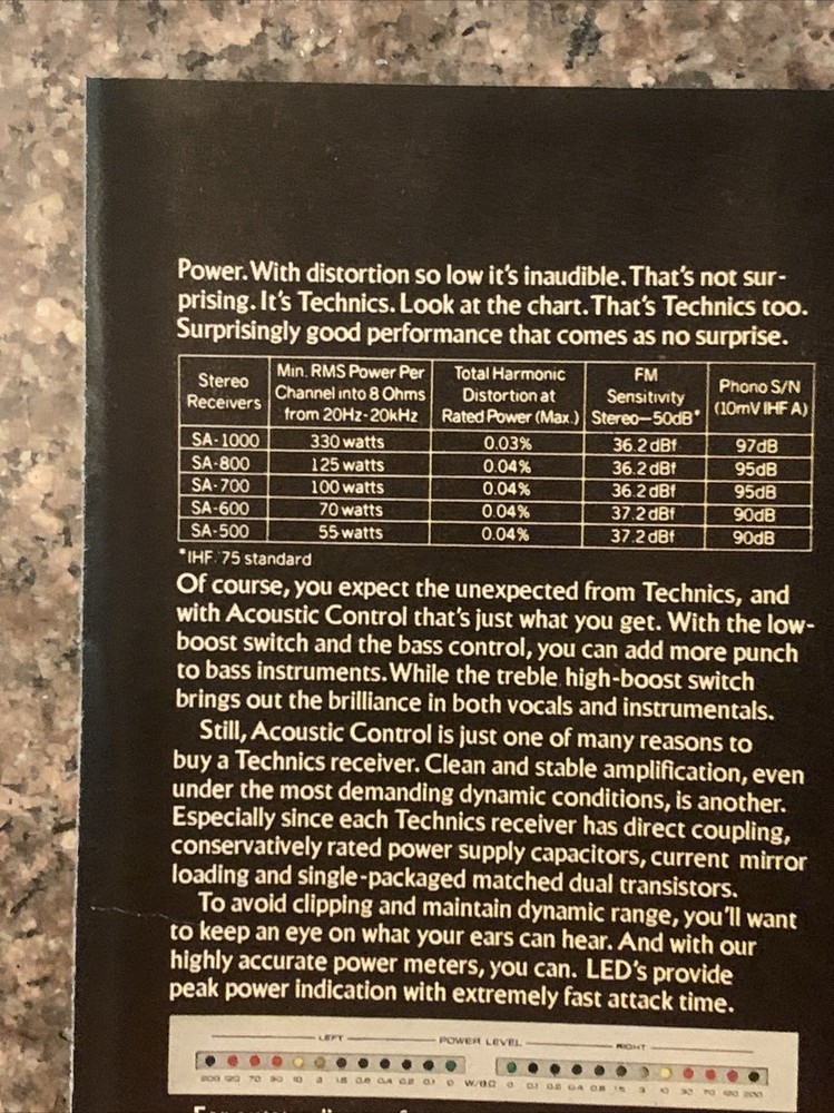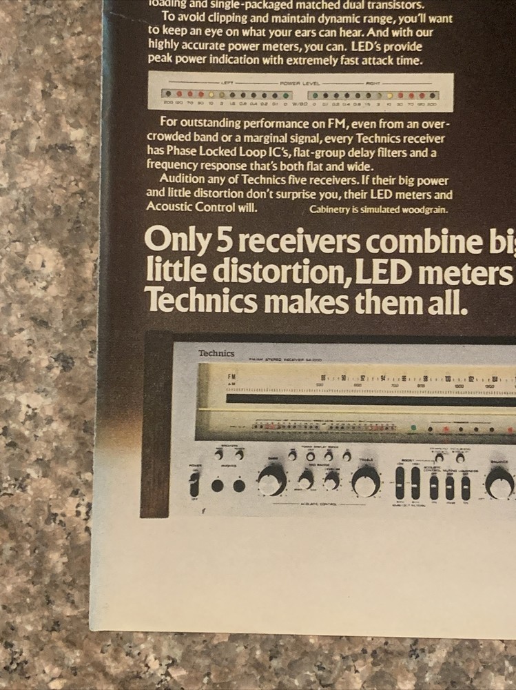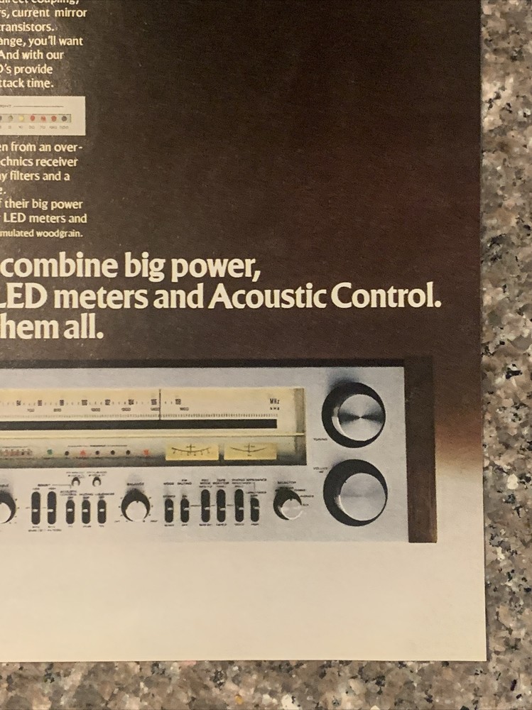 This vintage magazine print ad from 1979 features the Technics brand and showcases the benefits of their stereo receivers. The colorful design and bold font make it a standout piece of advertising from the 1970s. Measuring approximately 8"x11", this ad is a great addition to any collection of merchandise and memorabilia.