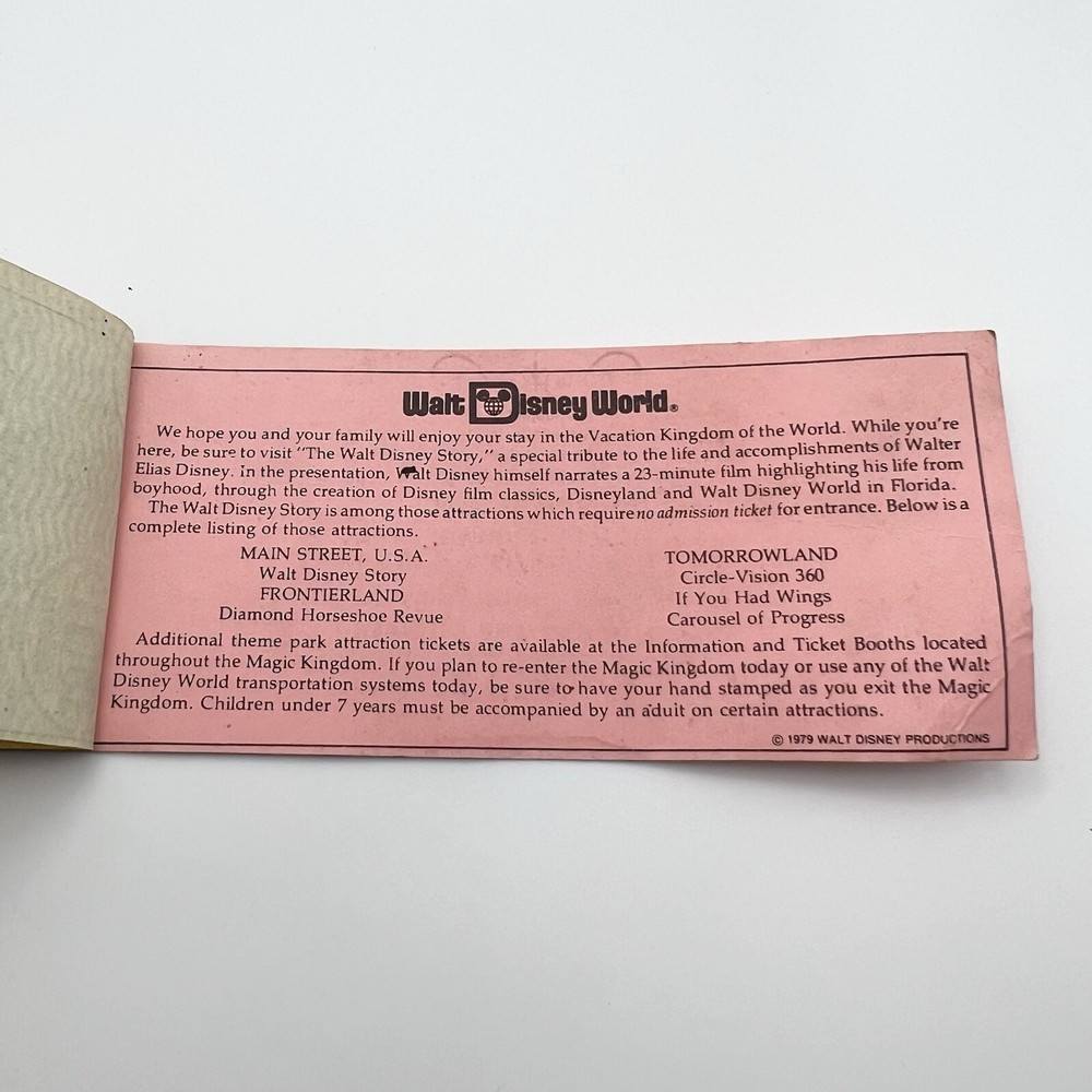 Experience the magic of Disney with this vintage 1979 Walt Disney World Ticket Book. This rare collectible is a coupon for 12 adventures in the Magic Kingdom. The ticket book is a must-have for any Disneyana enthusiast and is a perfect addition to any collection. This piece is a great way to relive the excitement of the early years of Disney World and is a testament to the franchise's enduring appeal. Don't miss out on the chance to own this piece of Disney history.