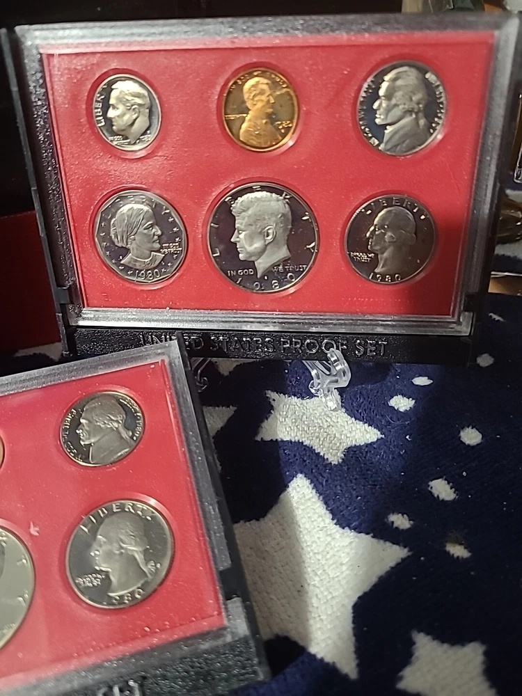 This 1980 Clad Proof Set is a rare and valuable addition to any coin collection. The set includes three sets of coins with denominations of 1C, 5C, 10C, 25C, 50C, and $1. The coins are made of copper alloy and copper-nickel and were struck in San Francisco. The set comes in its original government packaging and is uncirculated, making it a great find for collectors. The coins have not been modified and come with certification from the U.S. Mint. This proof set is a must-have for any serious coin collector.