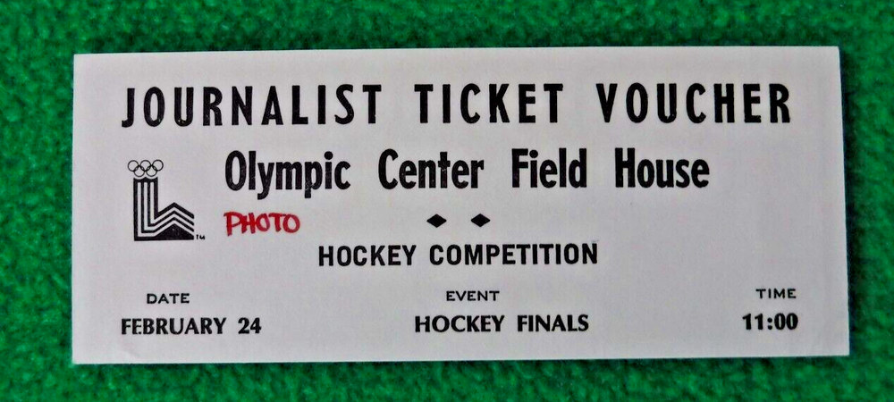 1980 Winter Olympic Ice Hockey tickets at the Olympic Center (2), PLUS "Mircale on Ice" Journalist Ticket Voucher. Saturday February 16, 1980. Sewden vs West Germany. MEDAL ROUND - MIRACLE ON ICE. FEBRUARY 24 - HOCKEY FINALS - 11:00, Olympic Center Field House, United States vs Finland, 4 - 2 win. This game was sold out, ABC had the television rights that extended to 12 midnight. Journalist received this ticket voucher to the Olympic Center Field House to cover this game. ABC-TV owned the rights to the broadcast and after 12 midnight of that day other news media outlets could then televise parts of the final game that ended up being called the "Mircale on Ice". "I feel that this is the "only" JOURNALIST TICKET VOUCHER in existence today". The pictures of my press pass are not included in the offering. I am the original owner of the voucher. Any additional information required, please ask.